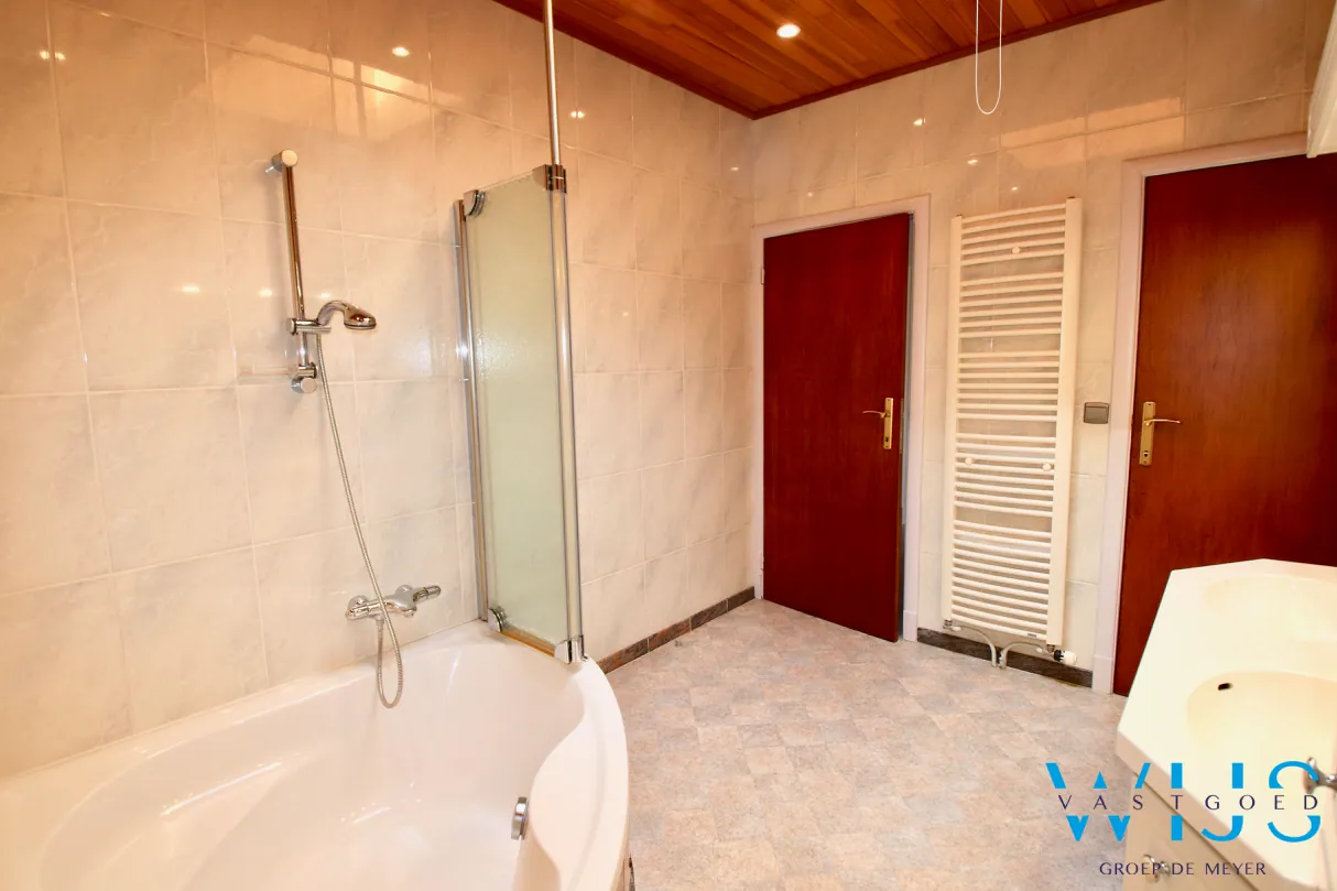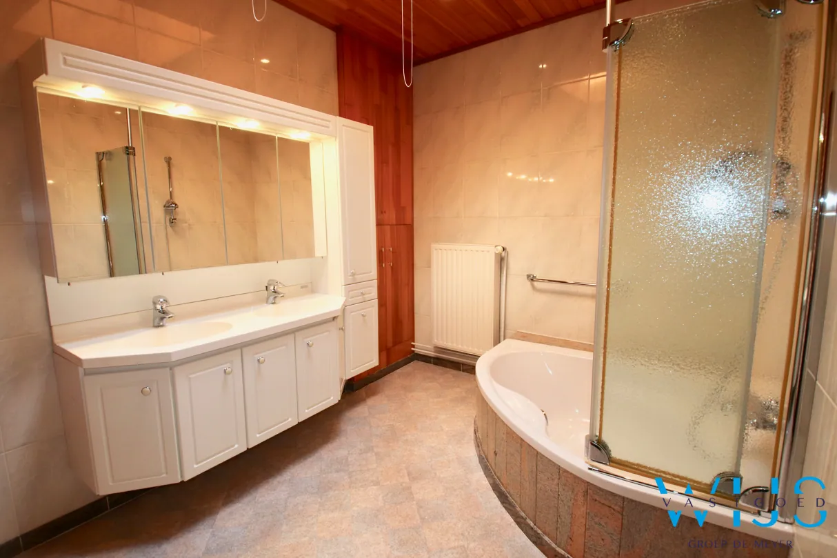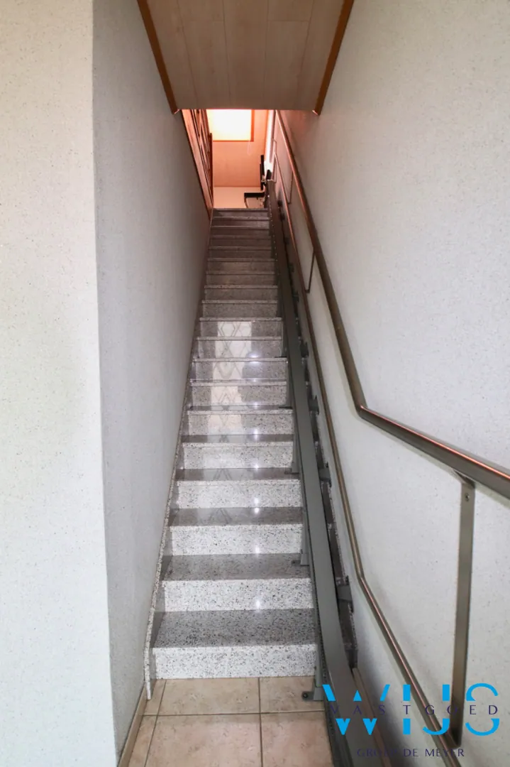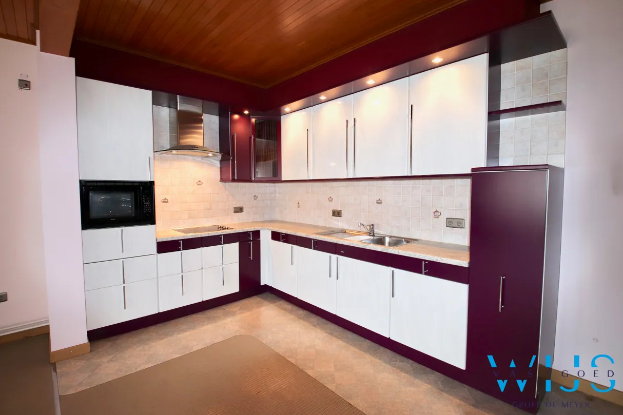 Indeling: inkom beneden met traphal, ruime lichtrijke leefruimte met tof zicht, open keuken, nachthal met apart toilet, slaapkamer 1 met ingemaakte kasten, nette badkamer met bad/douche combinatie, slaapkamer 2, berging/wasplaats met bijkeuken & het aangenaam zonneterras. Via de trap achteraan kan u naar de aparte garage met elektrische poort!