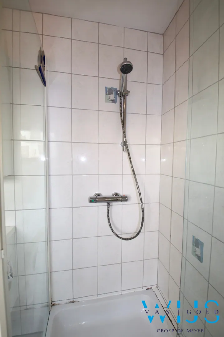 Indeling: inkom, leefruimte met eetplaats, keuken, ruim zonneterras, berging, badkamer met douche & toilet en de volwaardige slaapkamer.
