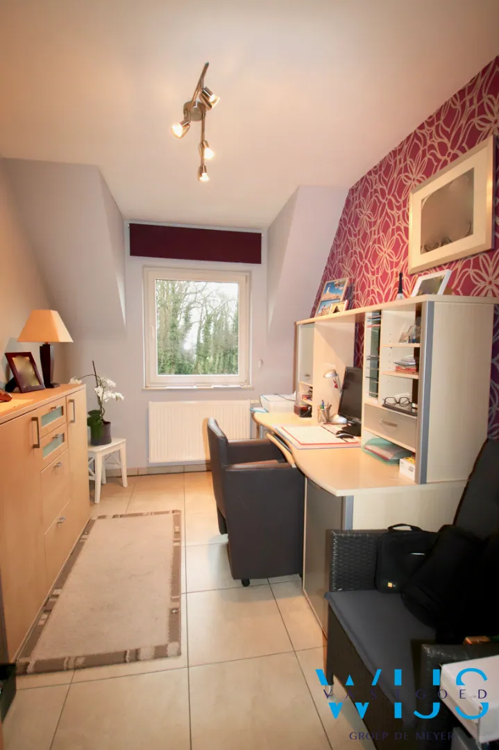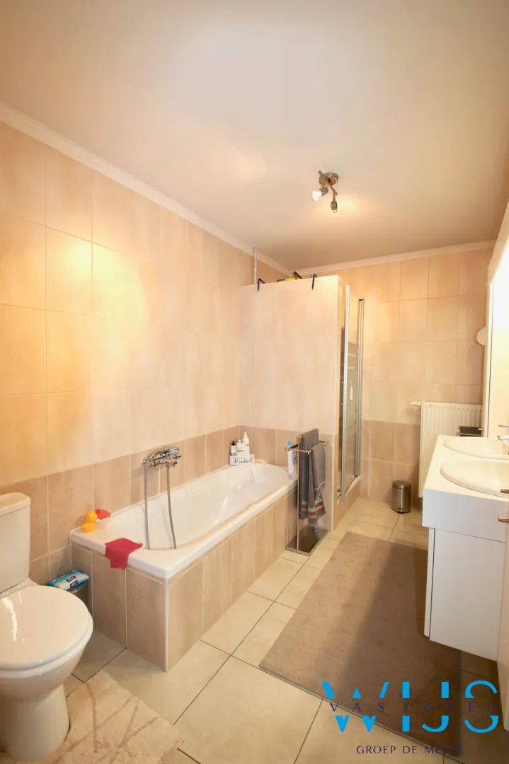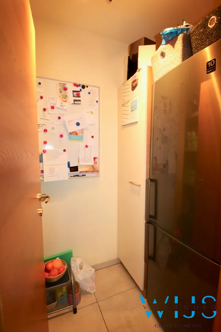 Indeling: inkomhal, bureauruimte, 2 volwaardige slaapkamers, badkamer met toilet, bad, docuhe & dubbele lavabo, ruime lichtrijke leefruimte met zonneterras, nette keuken met keukenberging en de wasplaats.