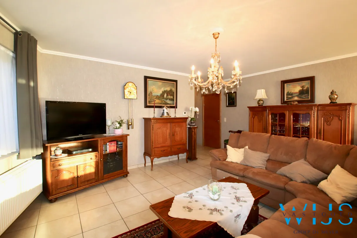 Indeling: Inkom, ruime leefruimte met zit- en eetplaats, open keuken met berging, 2 slaapkamers, badkamer met bad & douche, apart toilet en toegang tot de aansluitende garage + extra berging.