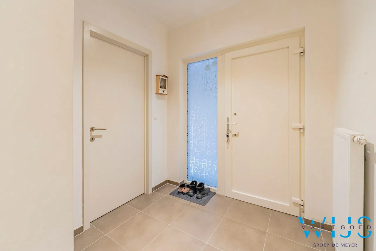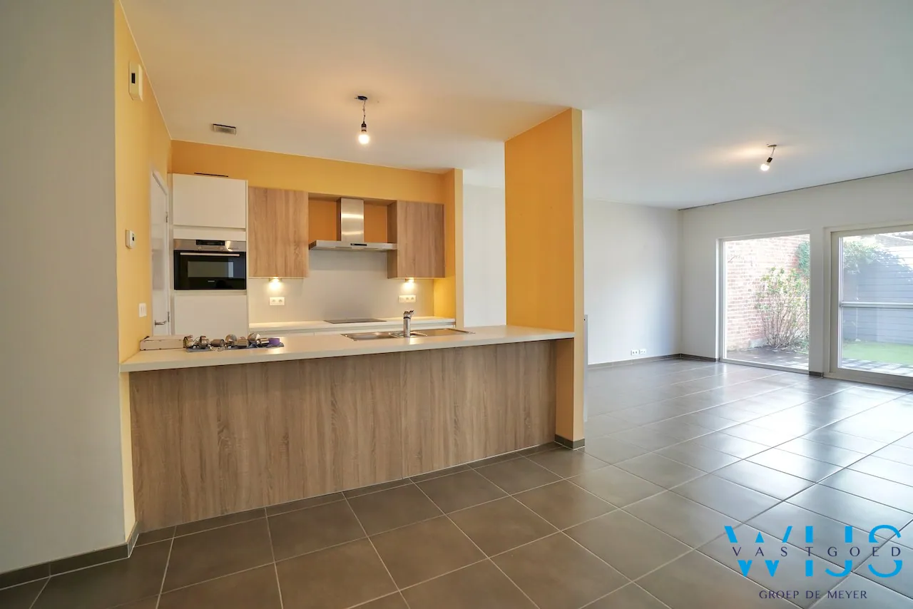 Indeling: Ruime inkom met apart toilet, 2 ruime slaapkamers, badkamer met inloopdouche, ruime berging/wasplaats en de leefruimte met open geïnstalleerde keuken. Het zonnige terras met onderhoudsvriendelijke tuin is hier uiteraard de echte troef !