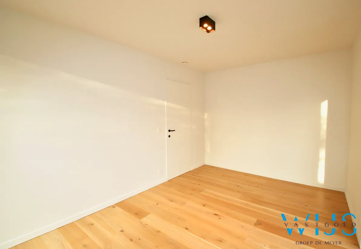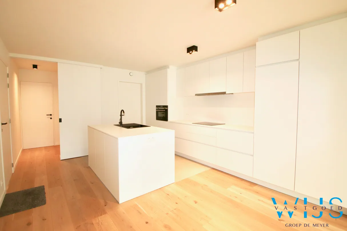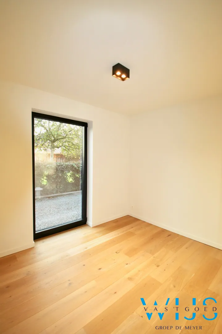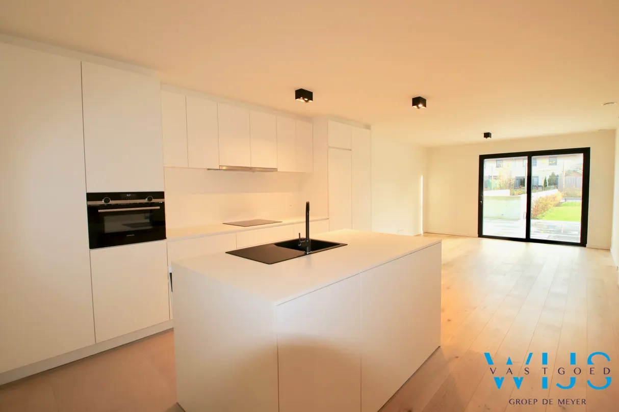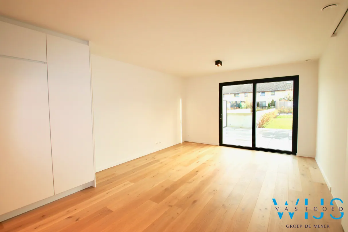 GELIJKVLOERS APPARTEMENT MET TUIN - NIEUWBOUW = ZEER ENERGIEZUINIG + EERSTE BEWONING ! 925 euro (incl. garage & de gemeenschappelijke kosten)