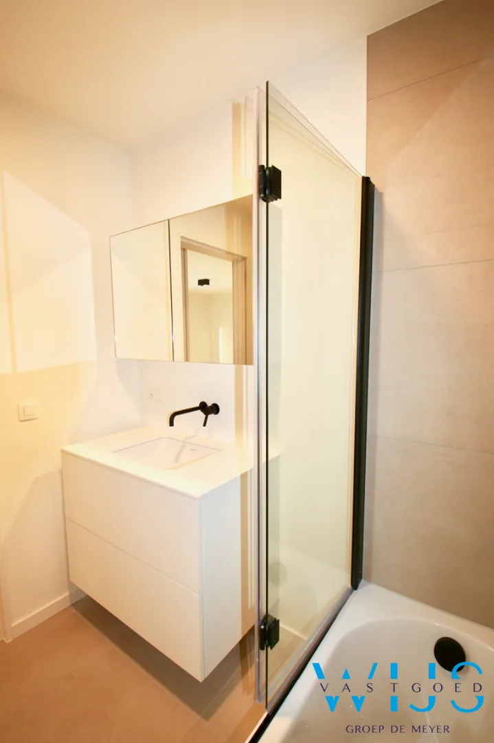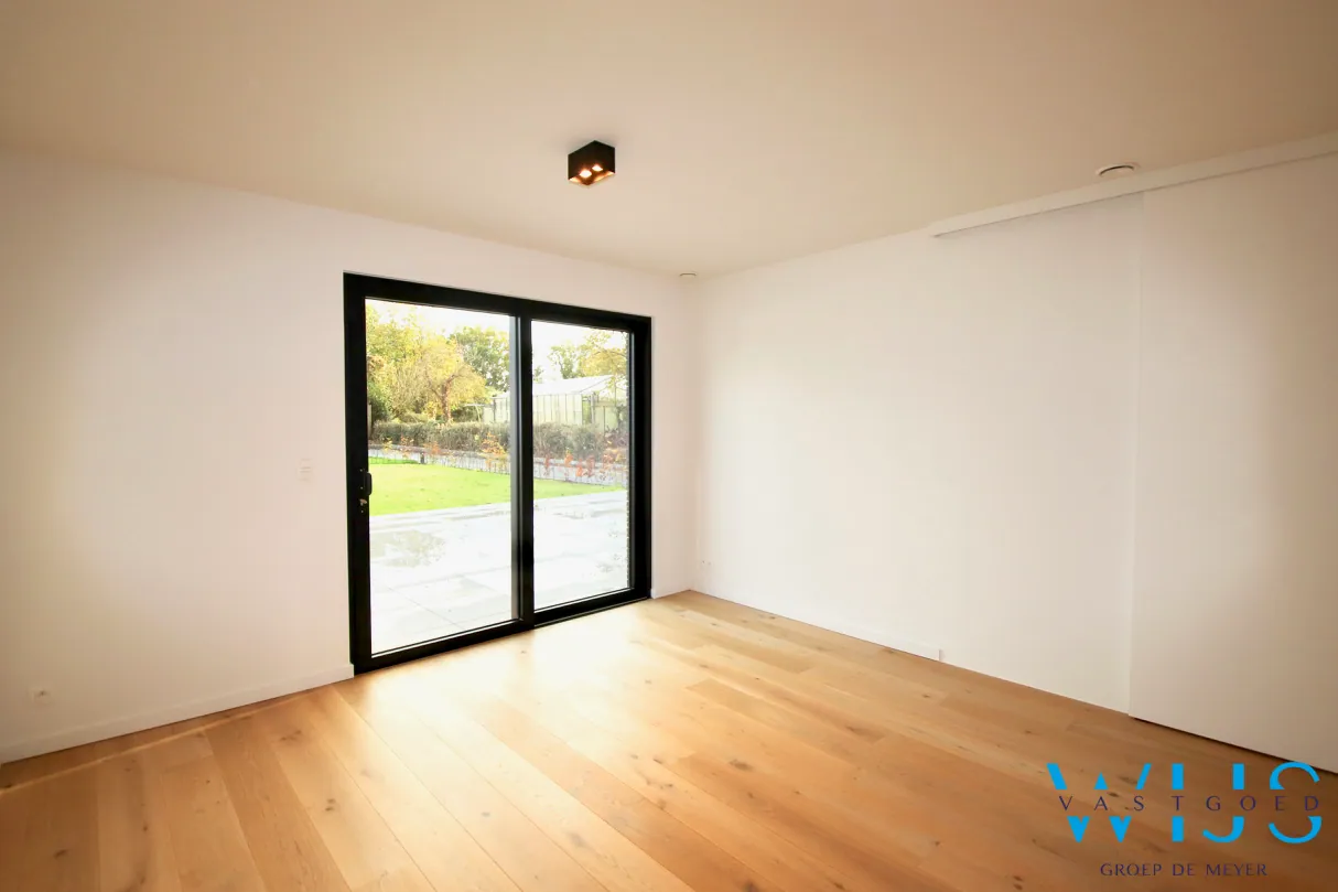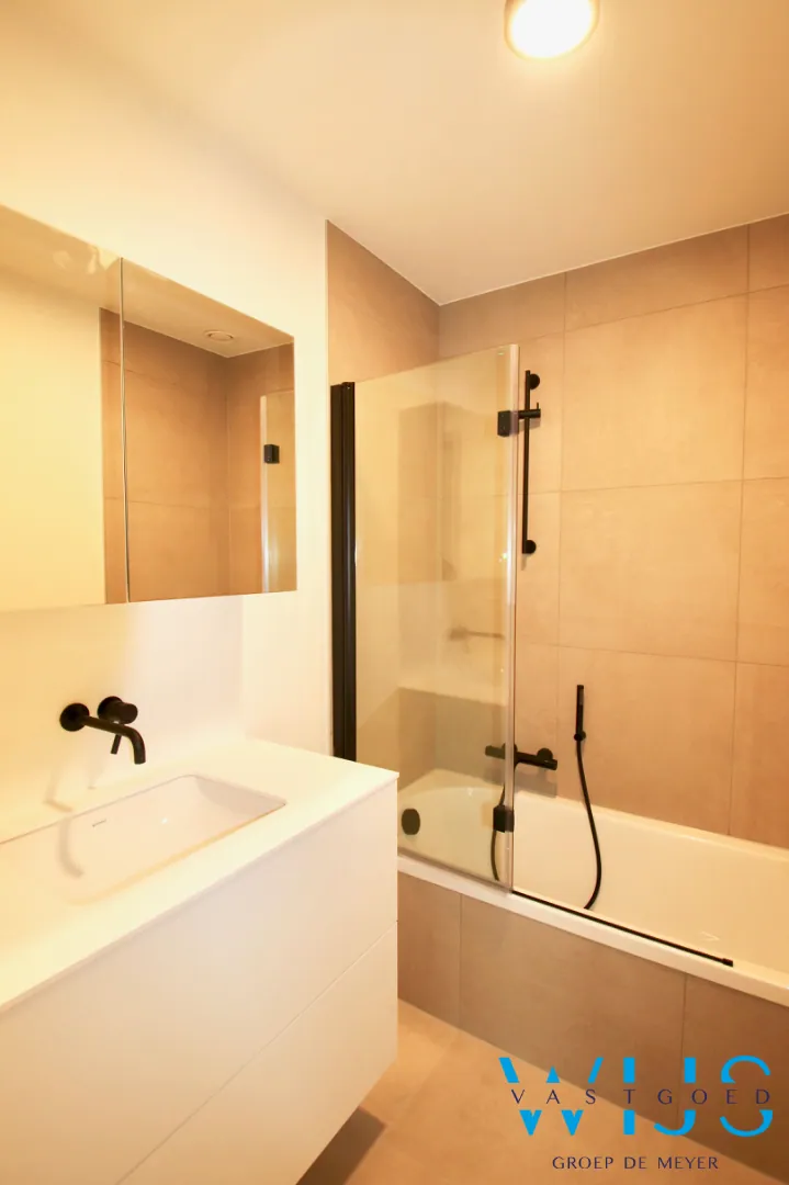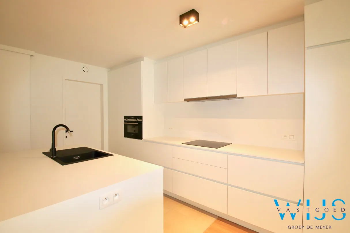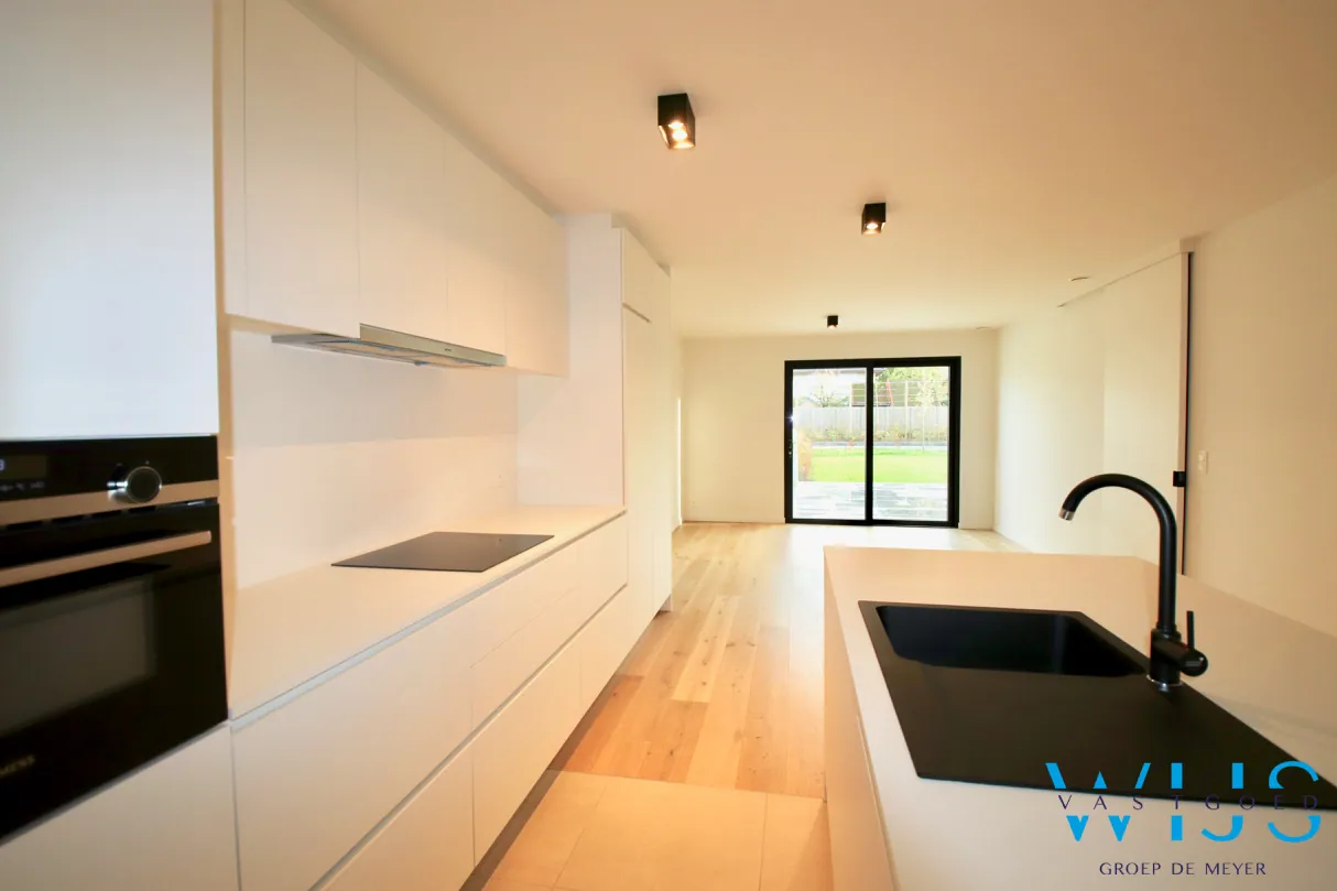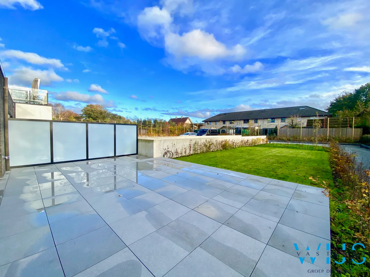 GELIJKVLOERS APPARTEMENT MET TUIN - NIEUWBOUW = ZEER ENERGIEZUINIG + EERSTE BEWONING ! 925 euro (incl. garage & de gemeenschappelijke kosten)