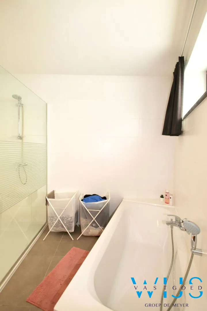 Indeling: Inkomhal met apart toilet, heel ruime leefruimte met open keuken en aansluitend zonneterras aan de zijkant, 2 slaapkamers, badkamer met tijdloos meubel, bad en inloopdouche en een handige berging/wasplaats.