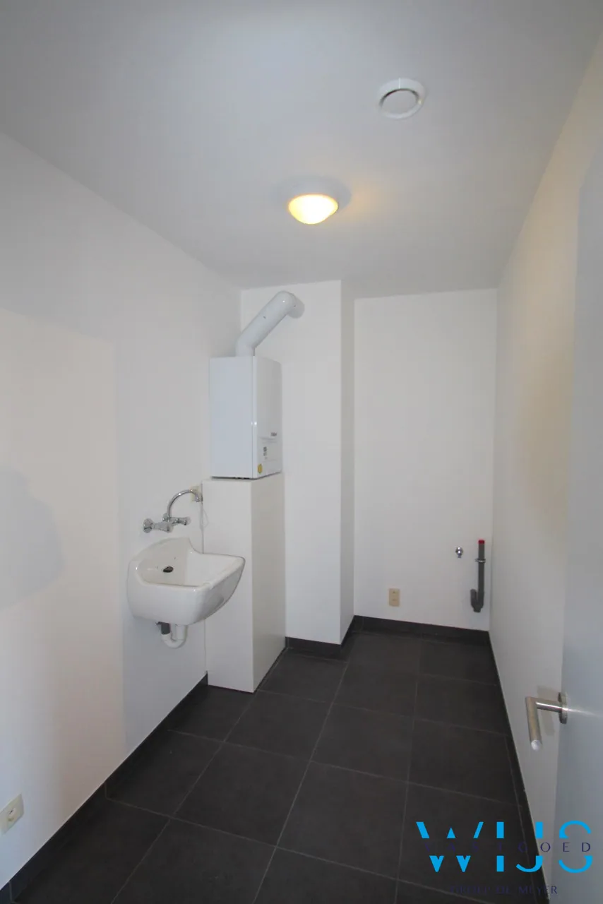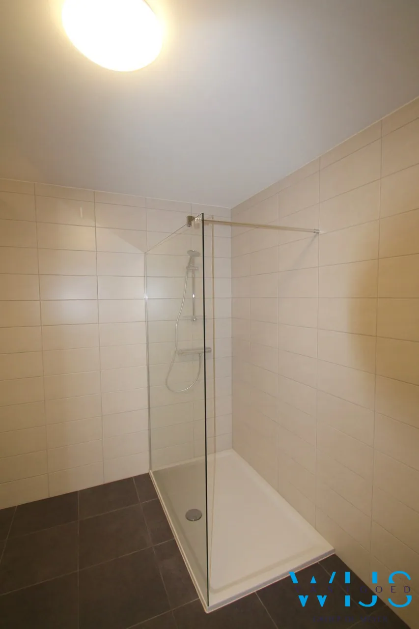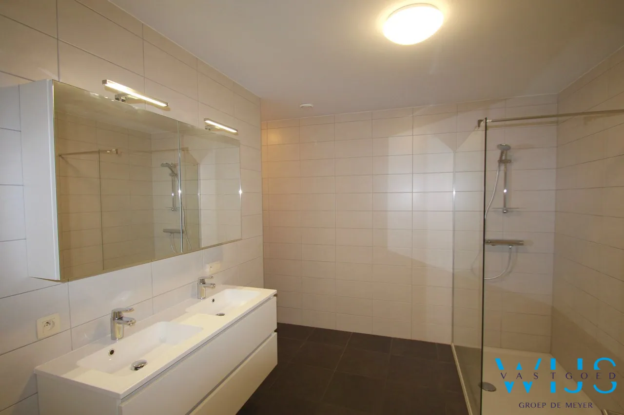 Indeling: inkomhal met plaats voor een vestiaire, apart toilet, zeer ruime badkamer met inloopdouche, 2 slaapkamers, open keuken incl. toestellen, aparte berging/wasplaats en de aangename leefruimte met aansluitend ruim zonneterras.
