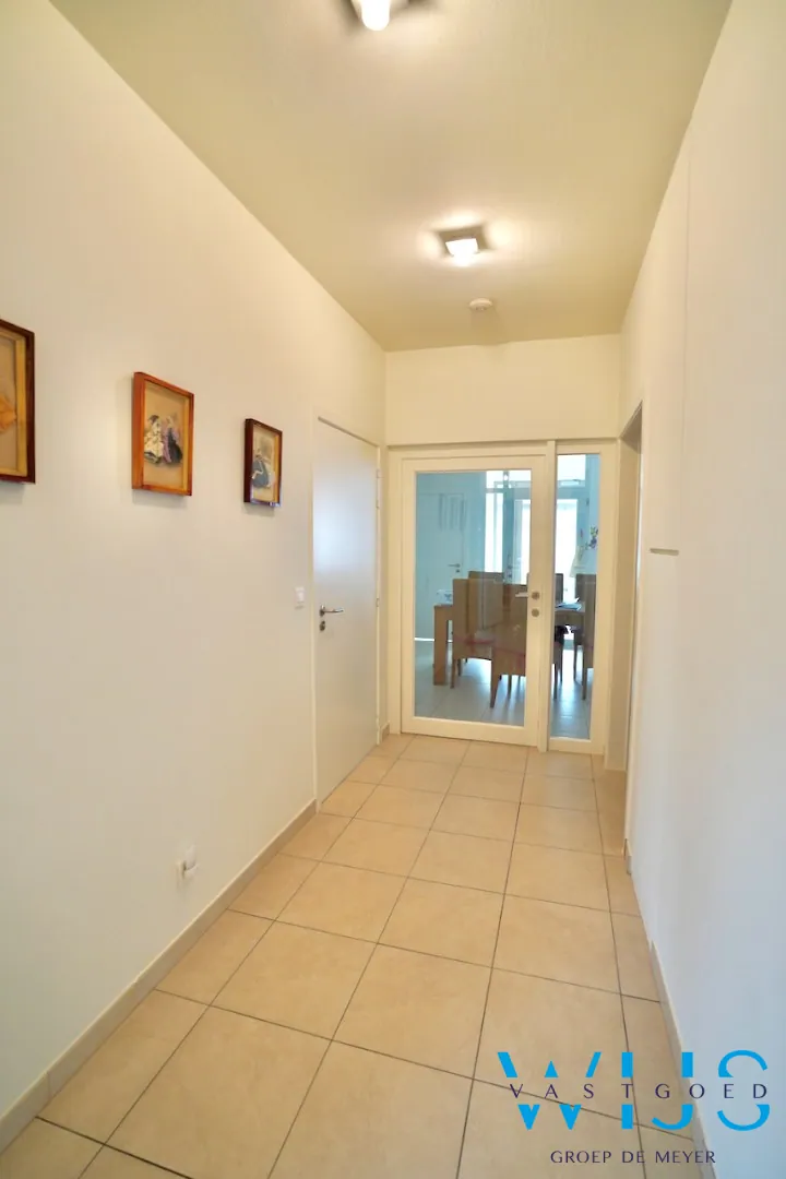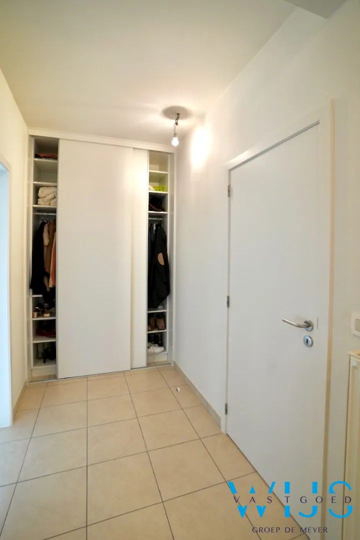 Indeling: inkomhal, leefruimte met eet- en zithoek, wasplaats/berging (ingemaakte kasten), moderne geïnstalleerde keuken, nachthal met vestiare, apart toilet, 2 slaapkamers en de badkamer met inloopdouche.