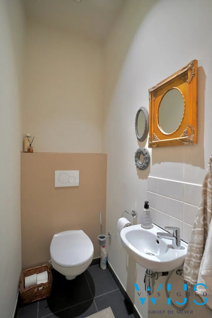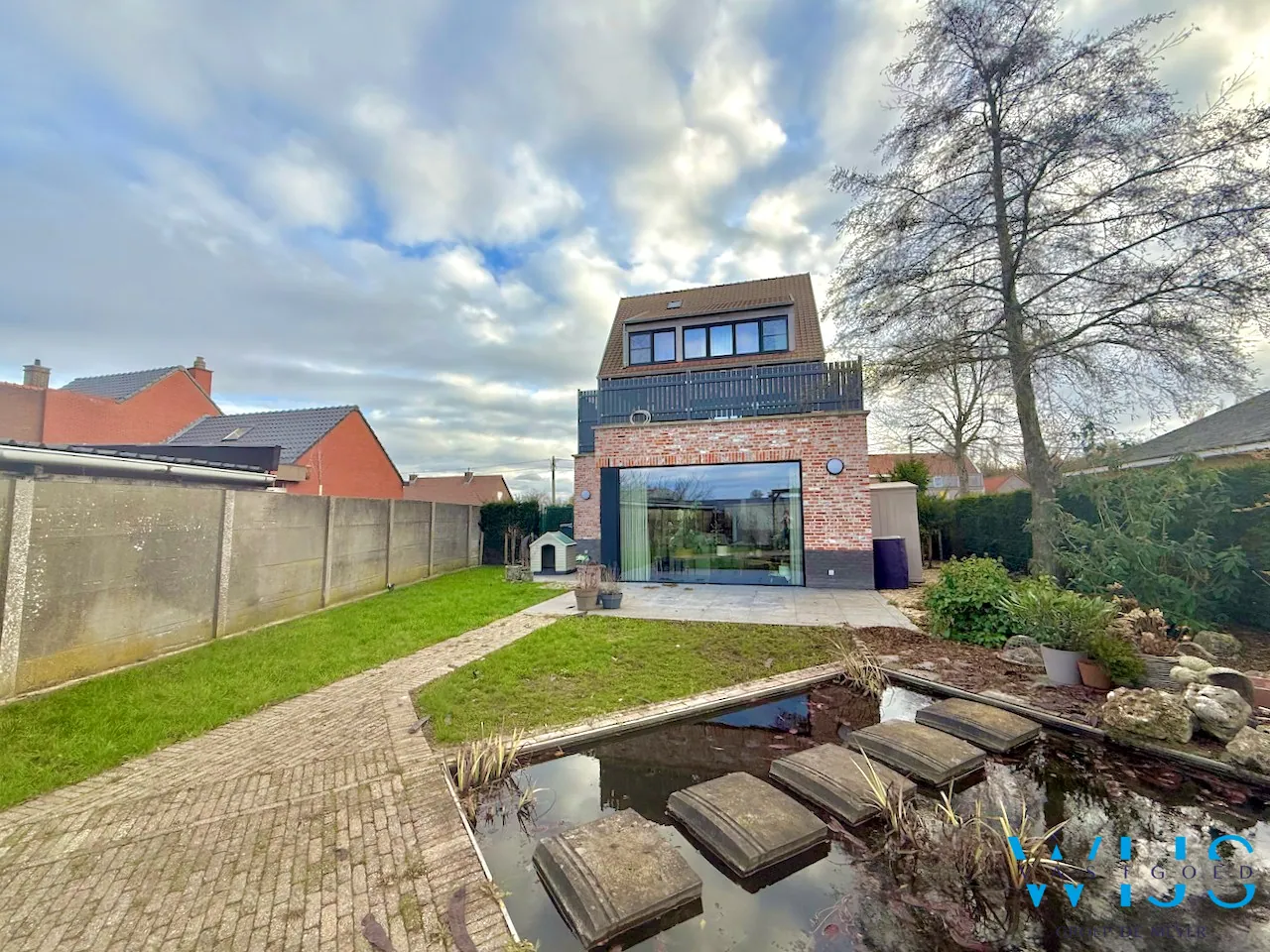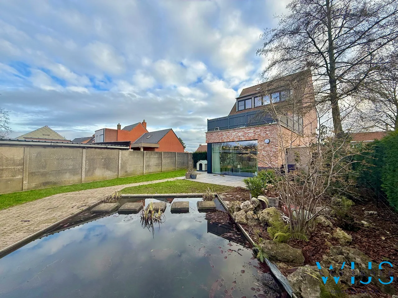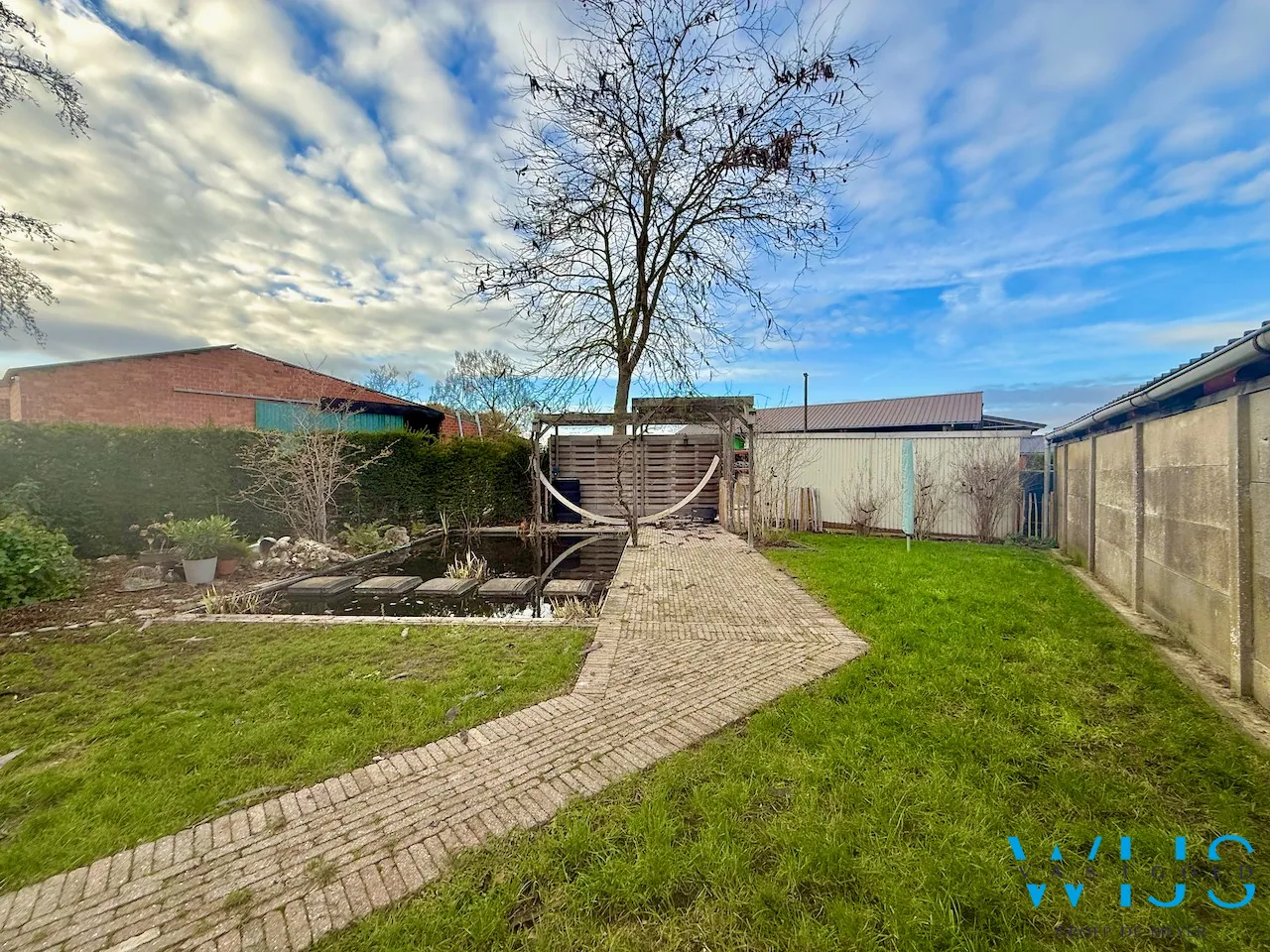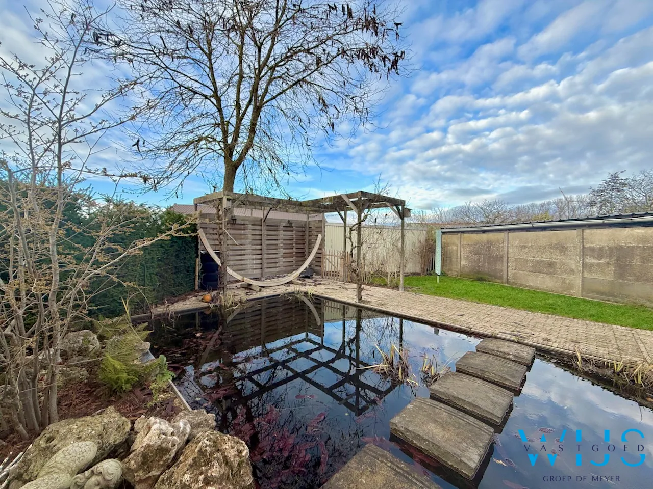 Buiten kan u genieten van een prachtige tuin met een sfeervolle vijver, waar u het hele jaar door van de natuur kunt genieten. Bovendien beschikt u over een aparte garage die rechtstreeks verbonden staat met de tuin ! De ligging is centraal en vlot bereikbaar, op wandelafstand van alle voorzieningen en toch in een rustige, landelijke omgeving.