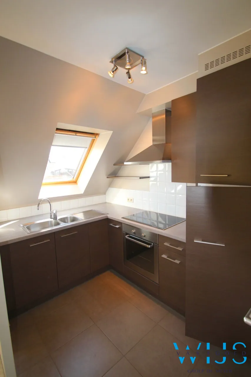 Dit heel tof lichtrijk dakappartement is ideaal gelegen in het centrum van Ertvelde vlakbij alle winkels en invalswegen.