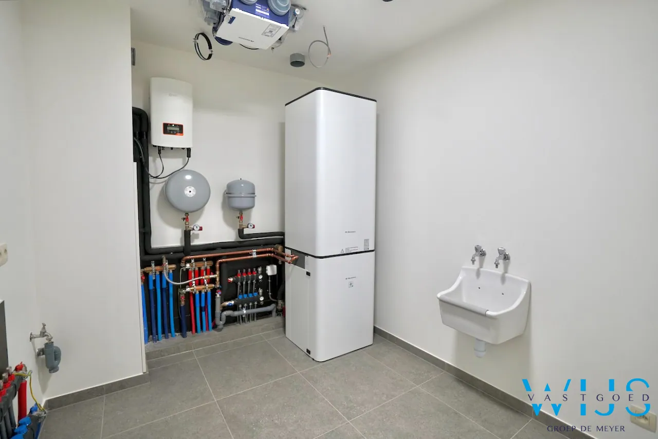 Het appartement biedt zeer ruime binnenruimtes aan zoals 3 riante slaapkamers en een royale leefruimte met open geïnstalleerde keuken, aangevuld met een prachtig dakterras waar u in alle rust kan genieten. Het appartement is uitgerust met vloerverwarming (alle ruimtes !) via een geothermische warmtepomp, wat garant staat voor energiezuinig en comfortabel wonen !