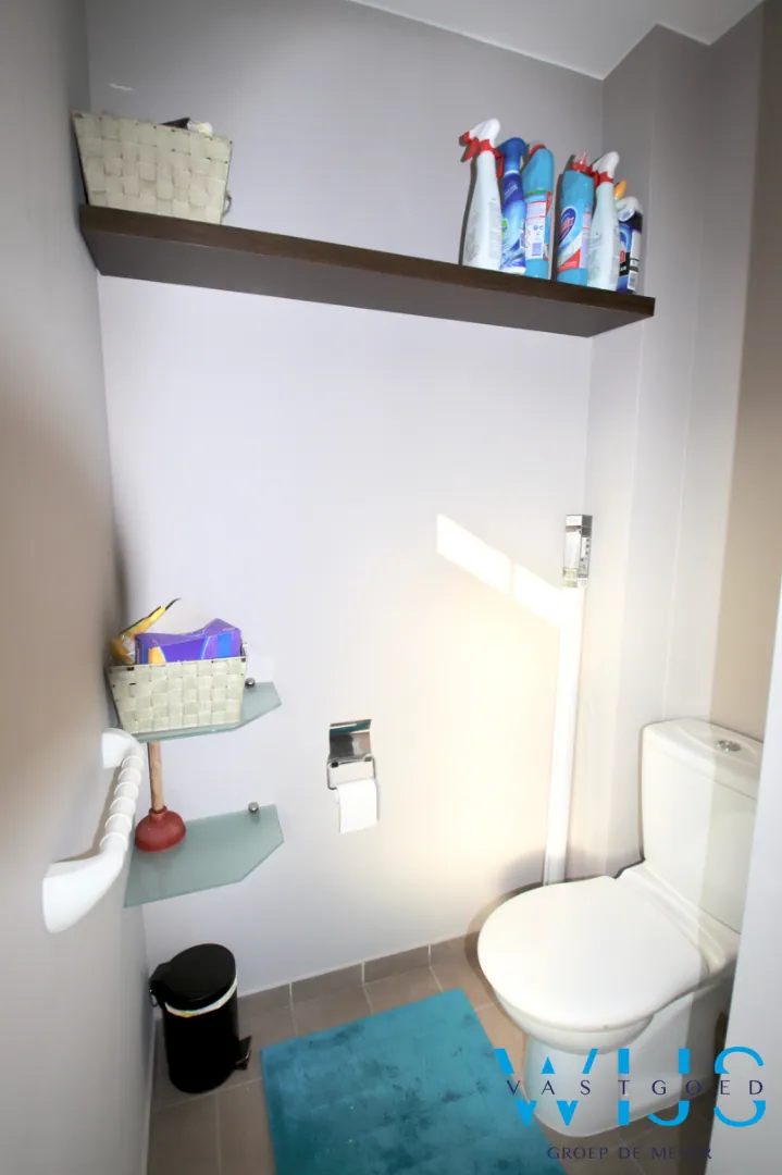 Indeling: Inkomhal met vestiaire, apart toilet, slaapkamer 1/bureauruimte, dubbele leefruimte met open keuken, berging & wasplaats en de zonnige tuin met zonneterras.