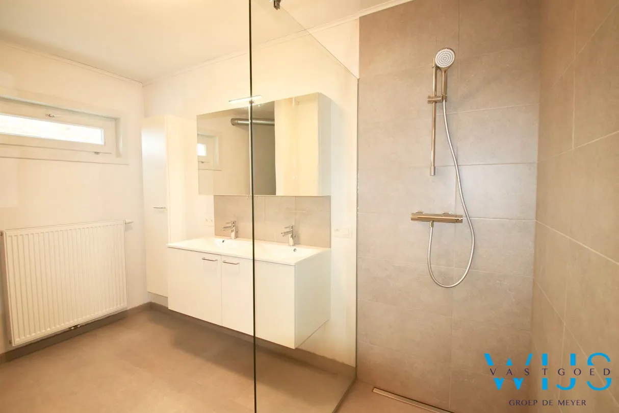 De badkamer werd recent vernieuwd en voorzien van dubbele lavabo & inloopdouche.