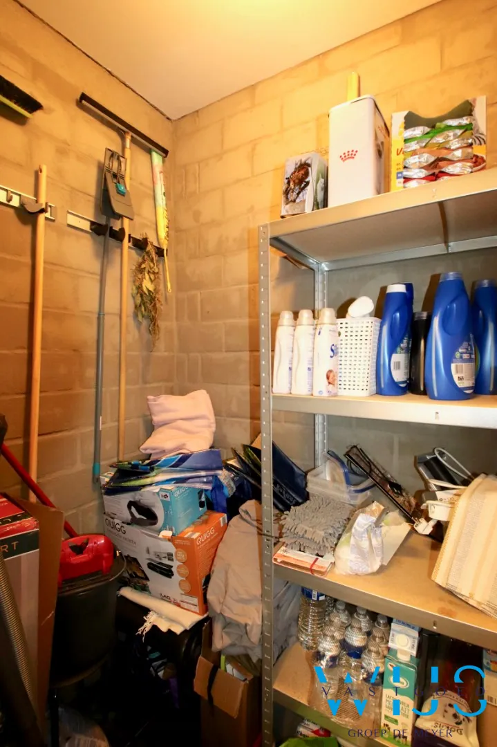 Indeling: Inkomhal met apart toilet, leefruimte met open geïnstalleerde keuken, berging/wasplaats, extra berging, inpandige garage en de zonnige tuin + ruime oprit vooraan.