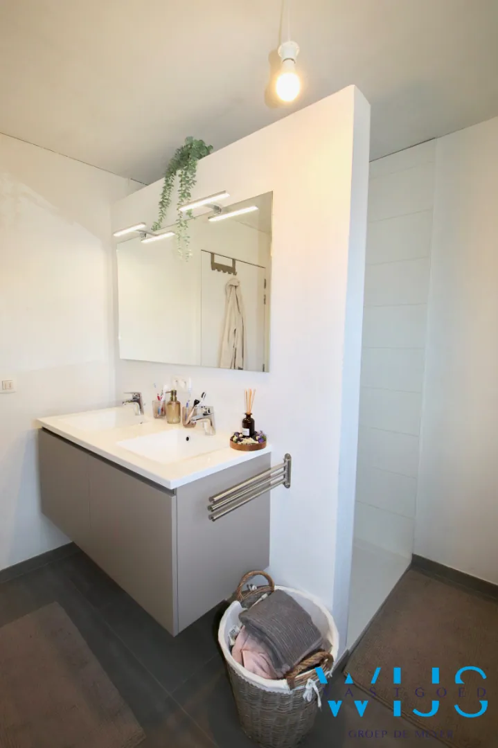 1ste verdieping: 3 slaapkamers, apart toilet en badkamer met dubbele lavabo, bad & douche.