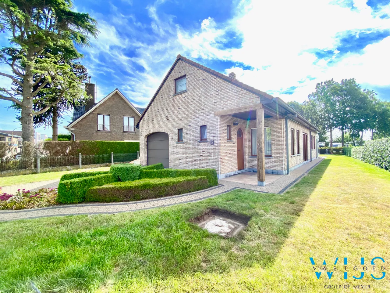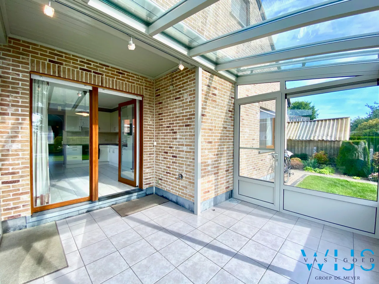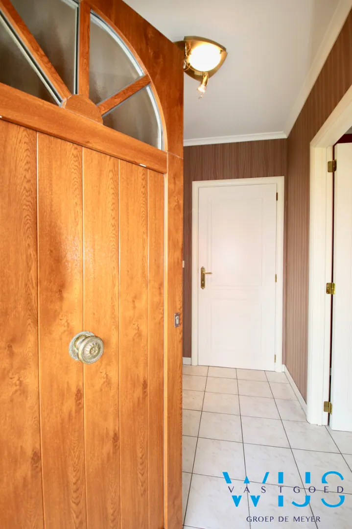 Indeling: inkomhal, apart toilet, ruime leefruimte, nette keuken, berging, leefveranda, 2 slaapkamers op gelijkvloers, badkamer met toilet, bad & douche, inpandige garage en de aangelegde tuin met tuinberging.