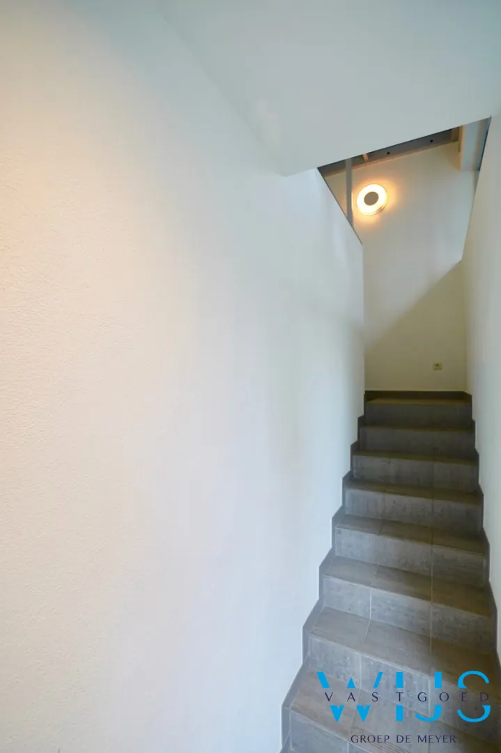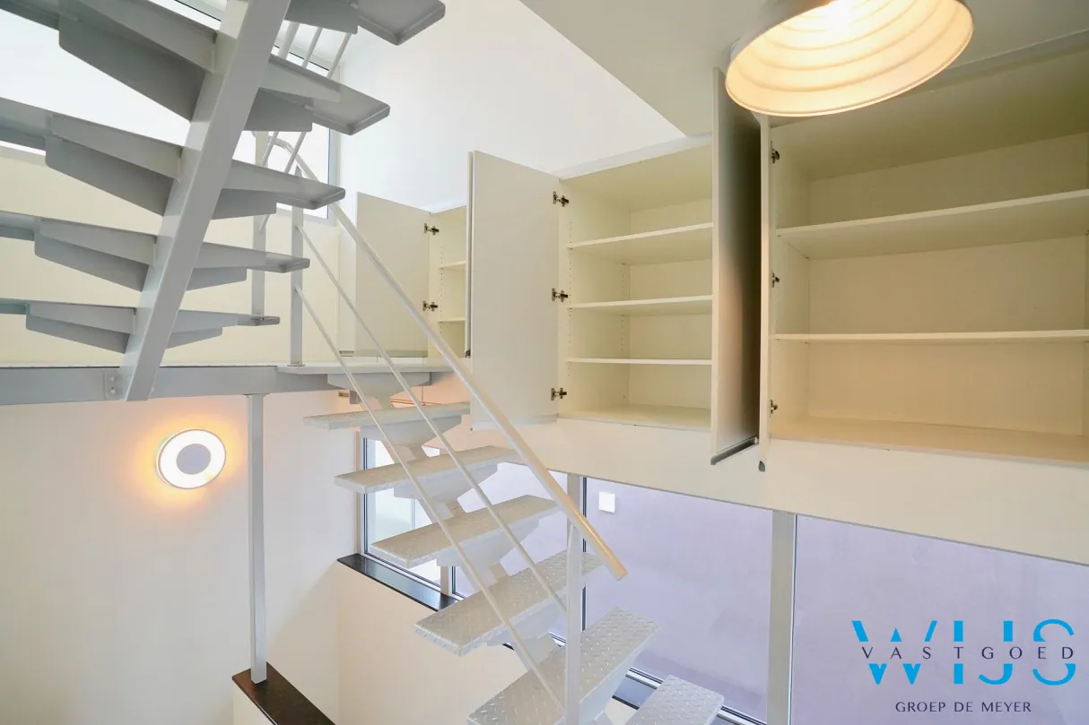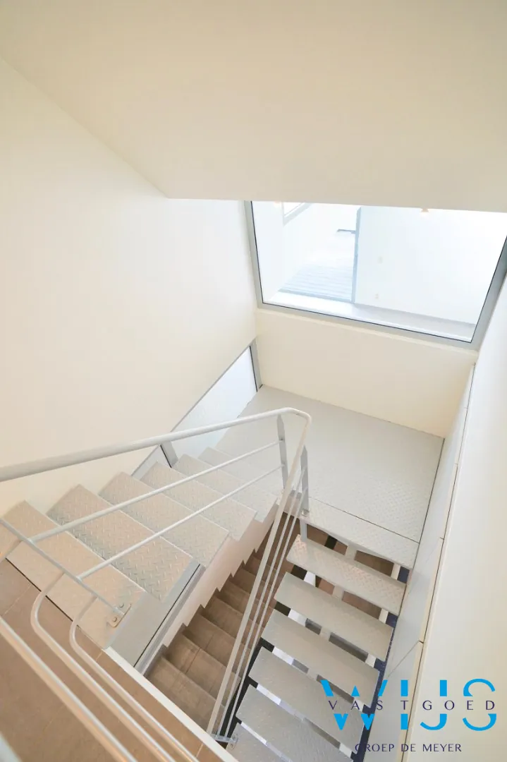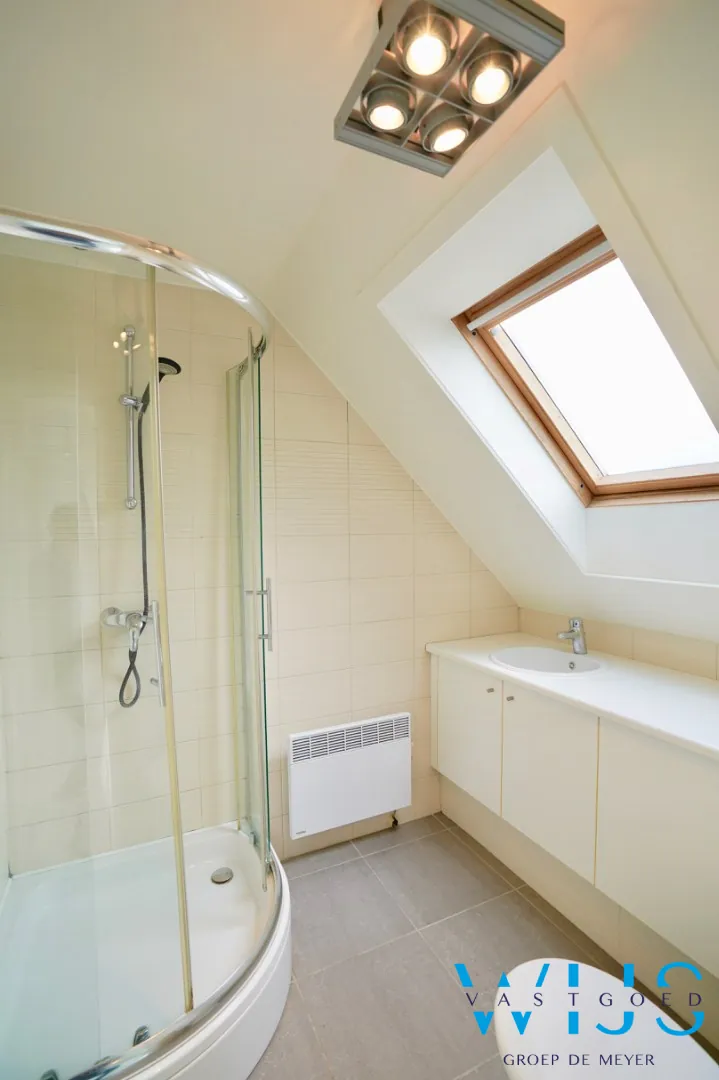 1ste verdieping (vaste trap + ingemaakte kasten): slaapkamer 2 + zonneterras en de 2de badkamer met douche & toilet. Er is parkeermogelijkheid in de directe buurt !
