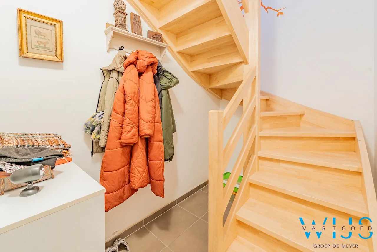 Indeling: Aparte inkomhal op het gelijkvloers, trap naar verdieping met; sas , apart toilet en de nette badkamer, de lichtrijke leefruimte met eet -en zithoek, wasplaats/berging, open geïnstalleerde keuken en toegang tot het deels overdekte terras. Op de 2de verdieping zijn er 2 ENORM ruime slaapkamers en verschillende handige bergingen.
