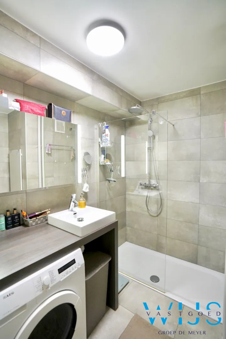 Indeling: Karaktervolle inkomhal met vestiaire, lichtrijke ... leefruimte met eet- en zithoek, open geïnstalleerde keuken met kwalitatieve toestellen, zonneterras over de volledige leefruimtes, nachthal, 3 slaapkamers en de badkamer met aangename inloopdouche, toilet en voorziening wasmachine.