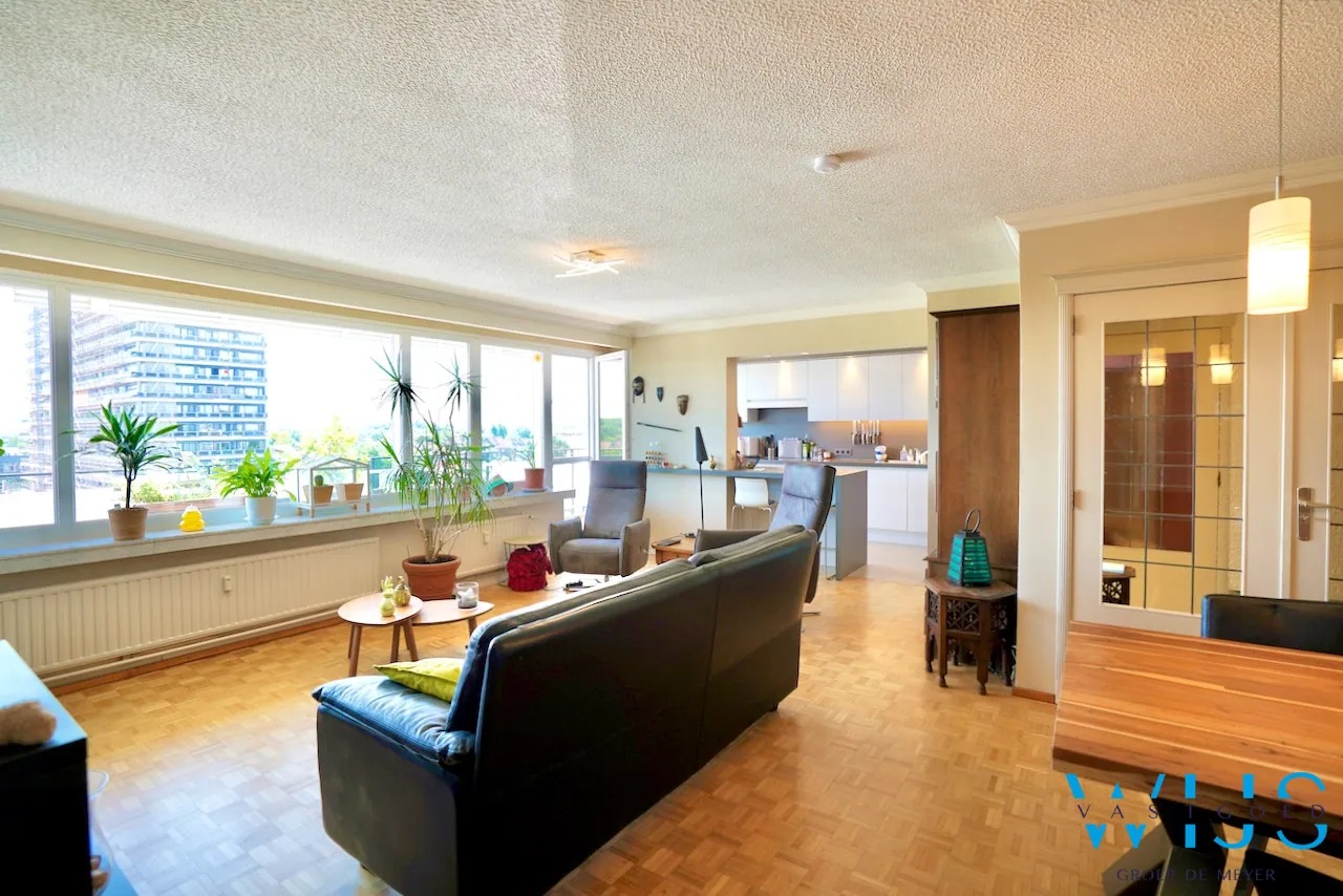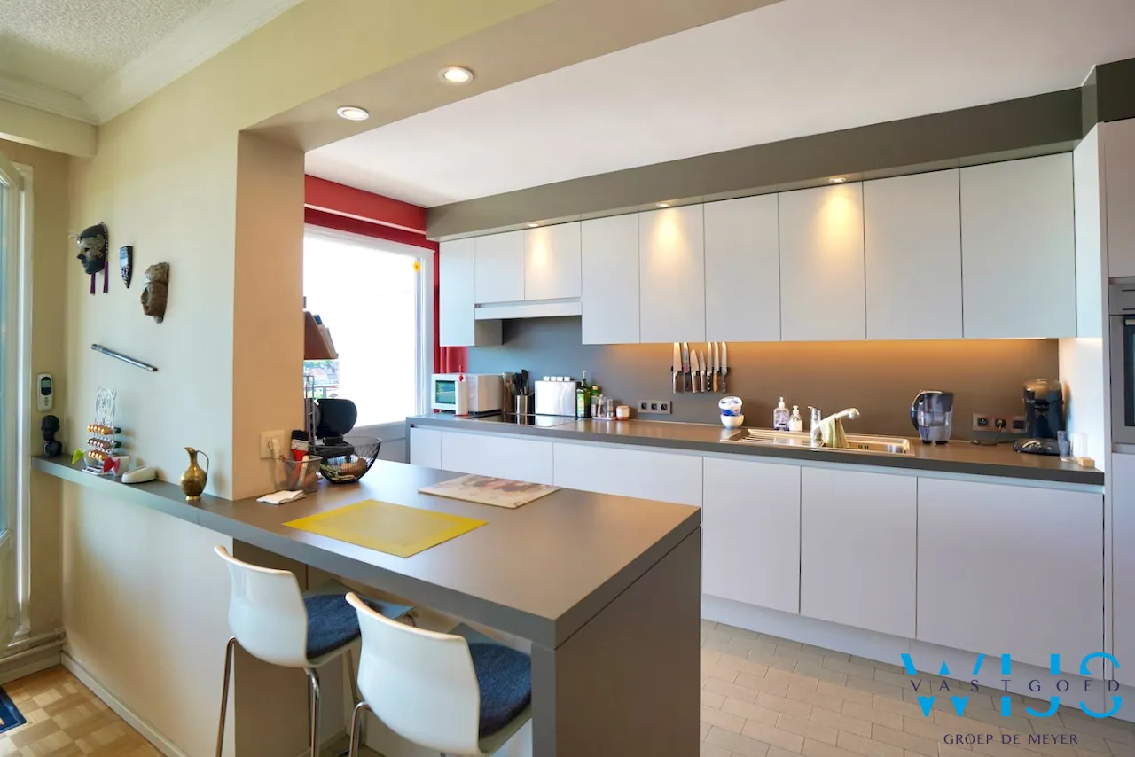 Dit zeer CENTRAAL gelegen drie slaapkamerappartement met ruim terras en geweldige zichten situeert zich in residentie "Ter Leie" en bevindt zich in de nabijheid van winkels, scholen, invalswegen en openbaar vervoer. Kortom, de locatie is perfect ! Het appartement van 108 m² werd reeds compleet opgefrist, PERFECT onderhouden en beschikt over een EPC LABEL B ! Er is een aangename kwalitatieve OPEN keuken (DOVY) aanwezig voorzien van alle nodige luxe. Vanuit de keuken heeft u een leuke connectie met de zit- en eethoek beide voorzien van duurzaam parket. Het zonneterras, toegankelijk vanuit zowel de keuken als leefruimte, geeft een prachtig rustgevend uitzicht over Gent ! De aangename badkamer en de 3 slaapkamers (waarvan 1 master) zijn reeds compleet opgeschilderd en meer dan instapklaar. Er is tevens een privatieve berging in de kelder en de mogelijkheid tot het huren van een staanplaats.