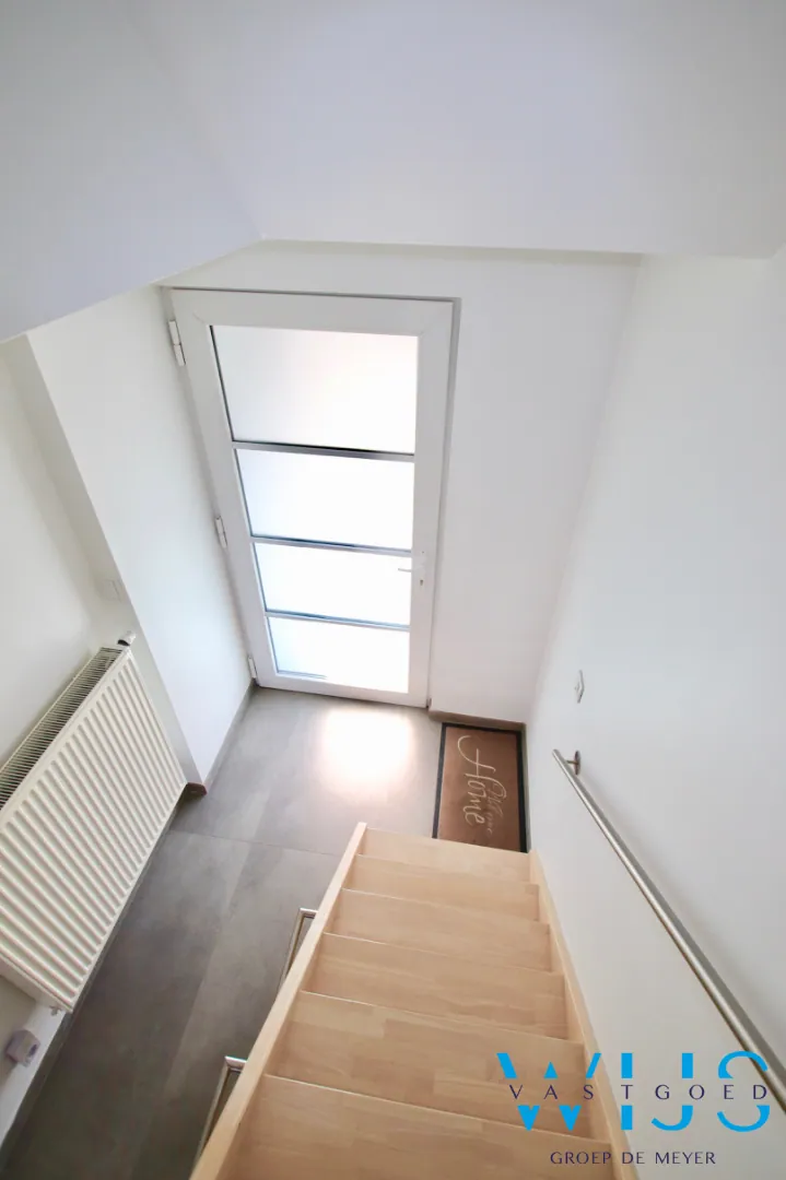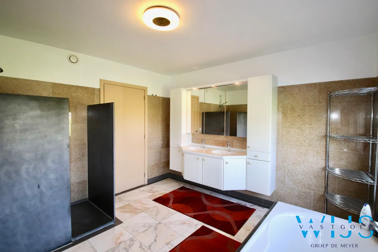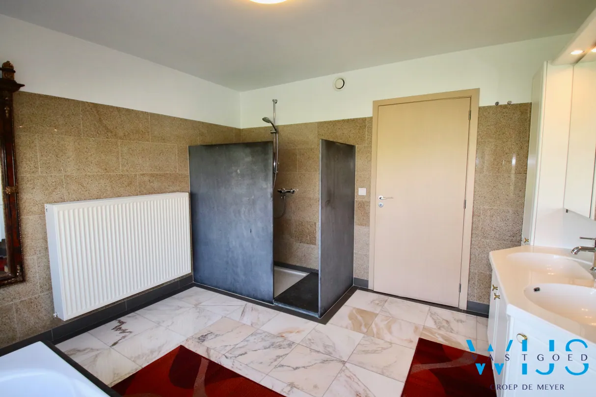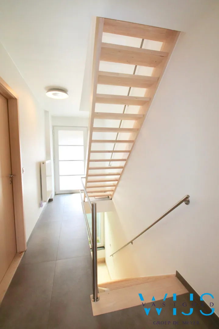 - Gelijkvloers : dubbele inpandige garage, apart toilet en slaapkamer 3 + kwalitatieve badkamer met bad & douche.