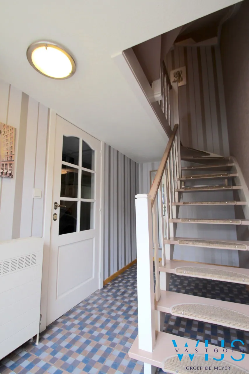 Op de verdieping is er de lichtrijke eigentijdse ingerichte living, leuke keuken, toilet en dan moet je nog een trap hoger om de 3 slaapkamers + badkamer te zien.