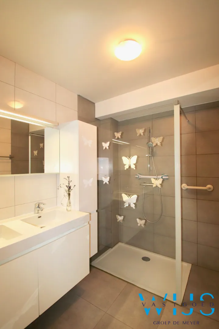 Indeling: Inkomhal met vestiaire, apart toilet, 3 mooie slaapkamers, badkamer met inloopdouche, leefruimte met open keuken incl. toestellen, berging en het zonneterras met afsluiting. ...
