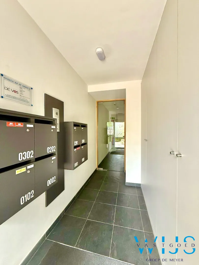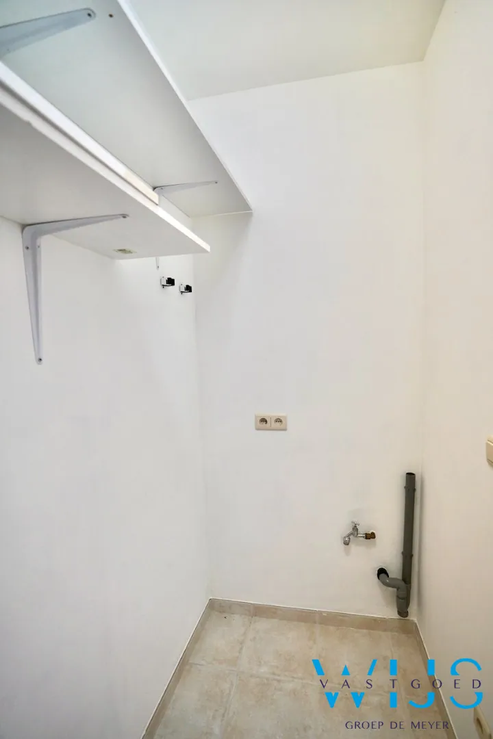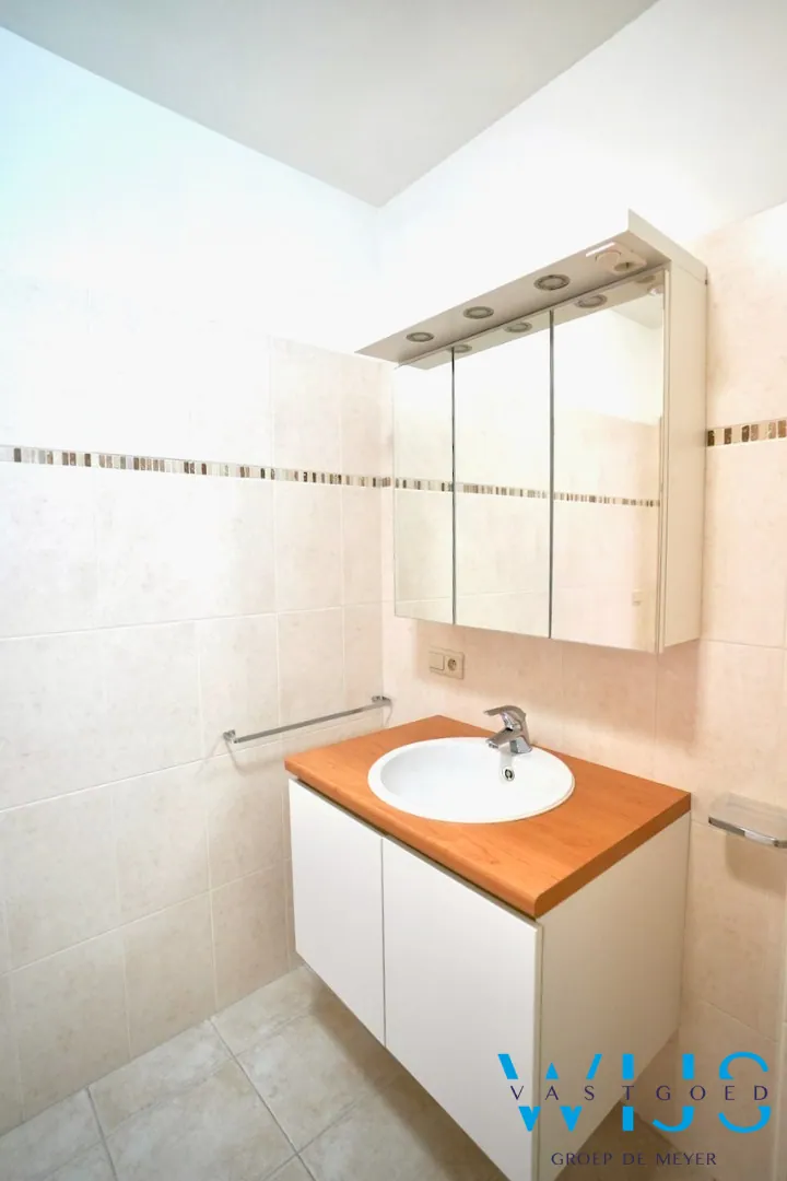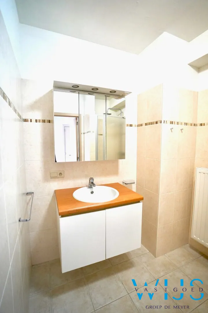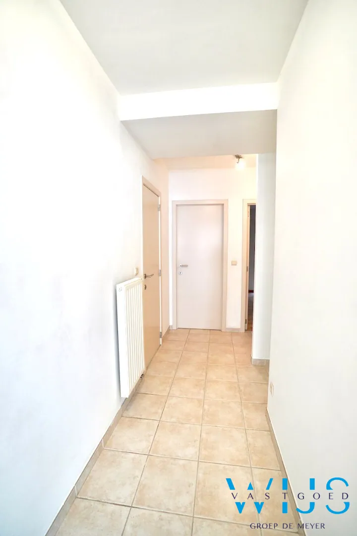 Indeling: inkomhal, apart toilet, vestiaire, lichtrijke ruime leefruimte, nette keuken, berging/wasplaats, nachthal, 2 slaapkamers, badkamer met douche en het aangename zonneterras achteraan.