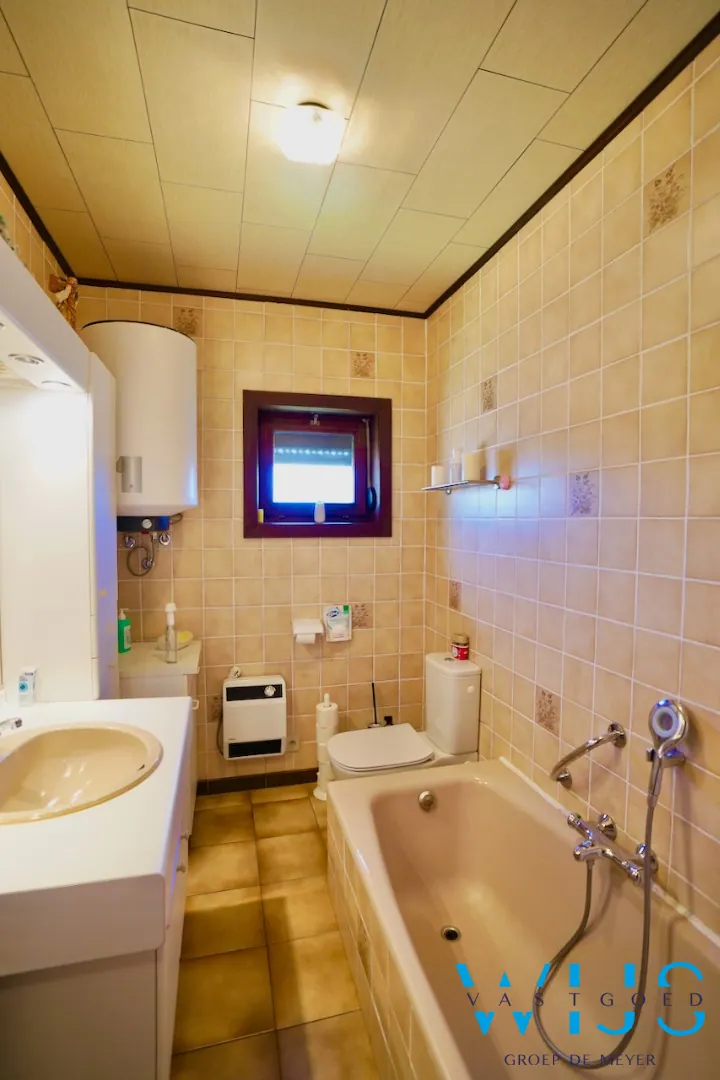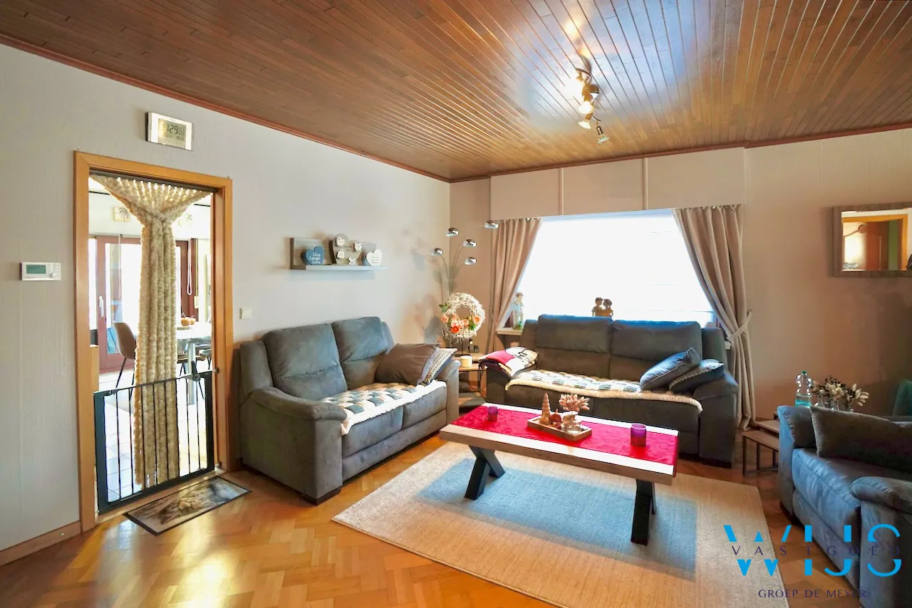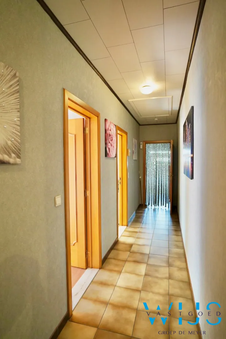 Indeling: inkomhal, dubbele leefruimte, aparte eetplaats, moderne recente keuken, bijkeuken met apart toilet, nachthal, badkamer met toilet en bad/douche combinatie, 3 slaapkamers en de opbergzolder.