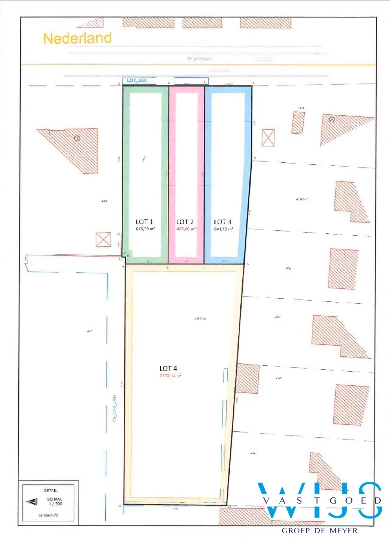 LOT 1: 645,39 m² - vraagprijs: 142.000 euro