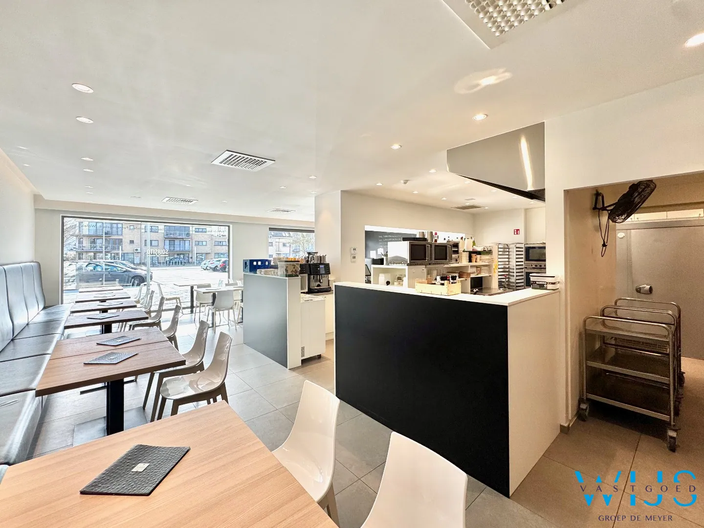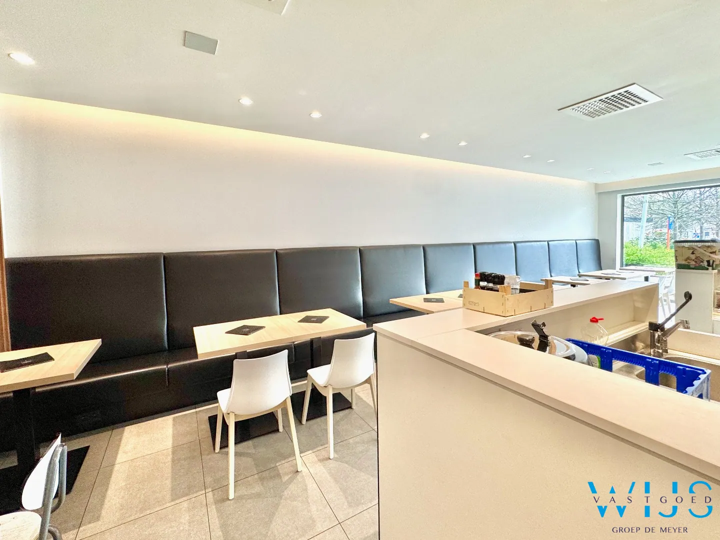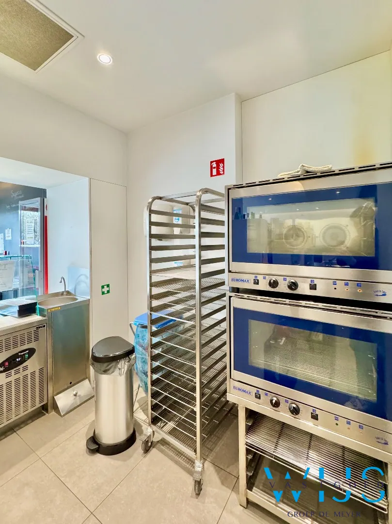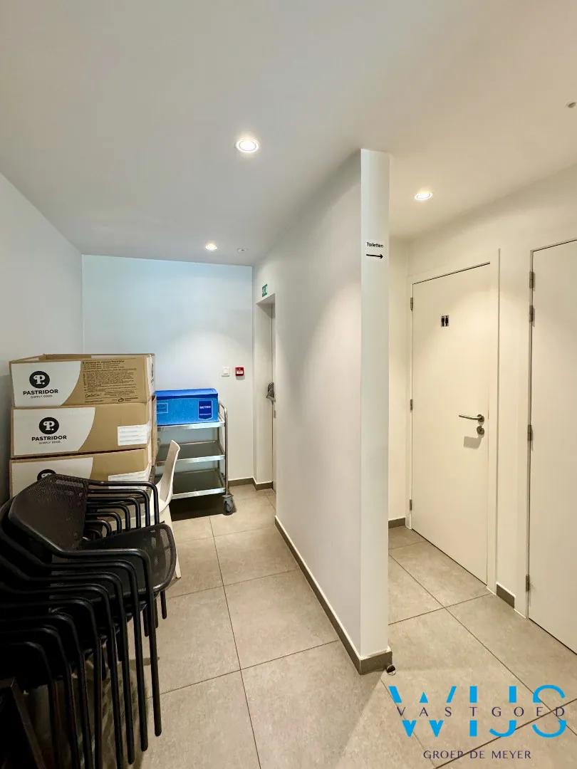 Dit recente en perfect onderhouden handelspand op het gelijkvloers beschikt over een ruime oppervlakte van ca. 109 m² en is momenteel ingericht als volledig uitgeruste lunchzaak. Dankzij de complete uitrusting (toonbank, open keuken, frigo’s, diepvries, sanitaire voorzieningen…) kan je hier meteen starten zonder extra investeringen.
