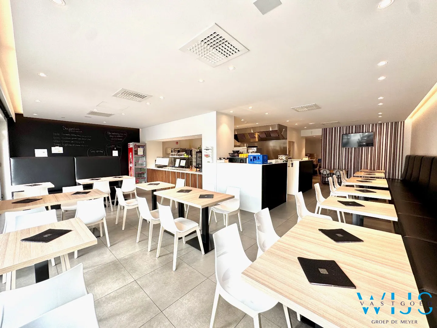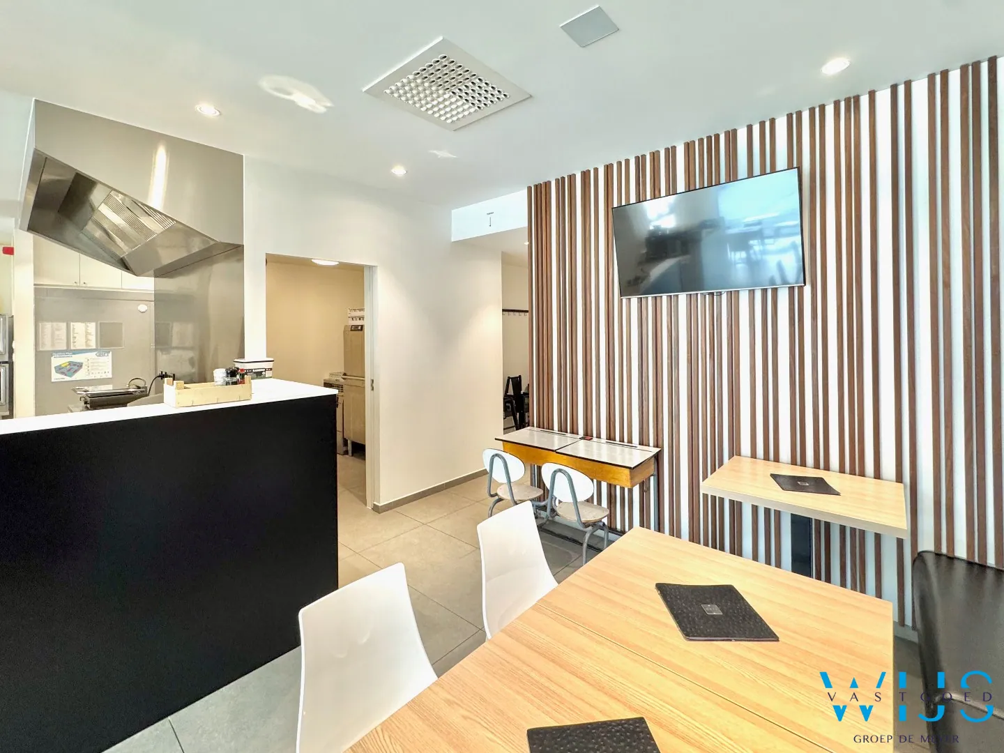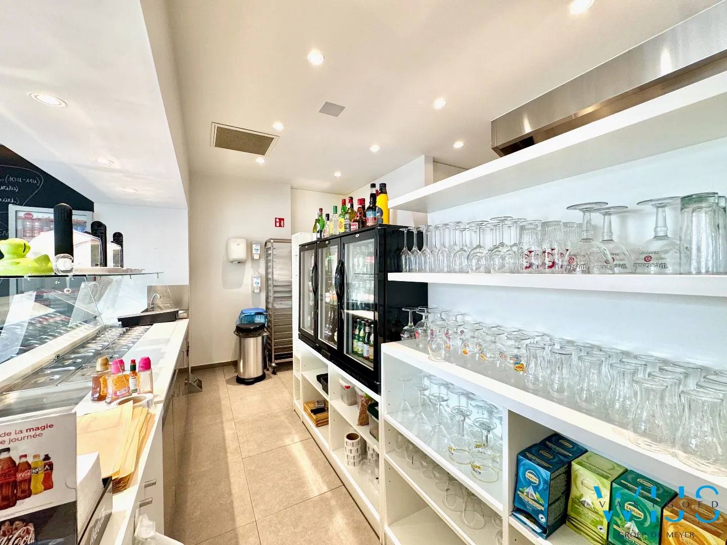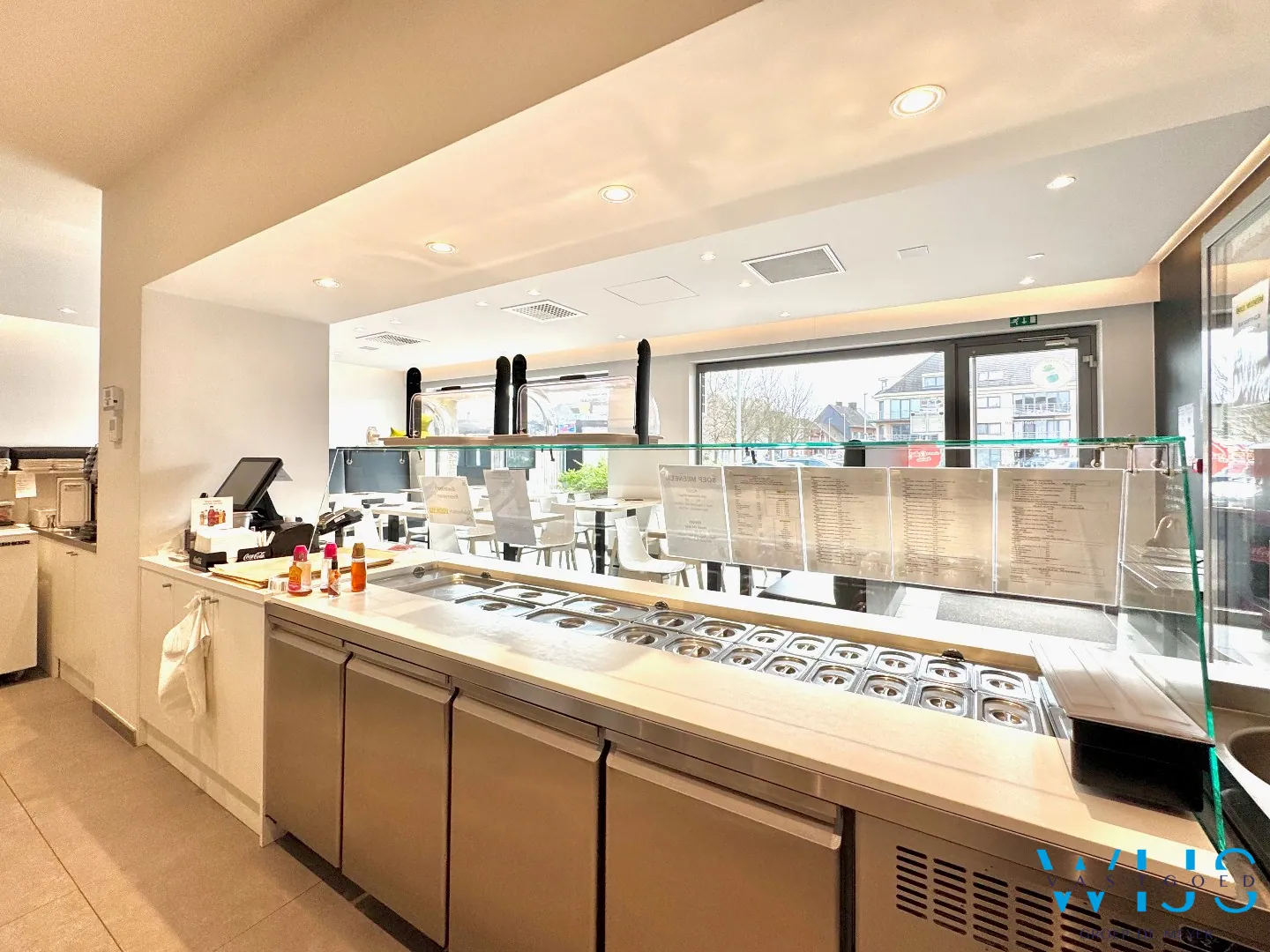 Dit recente en perfect onderhouden handelspand op het gelijkvloers beschikt over een ruime oppervlakte van ca. 109 m² en is momenteel ingericht als volledig uitgeruste lunchzaak. Dankzij de complete uitrusting (toonbank, open keuken, frigo’s, diepvries, sanitaire voorzieningen…) kan je hier meteen starten zonder extra investeringen.