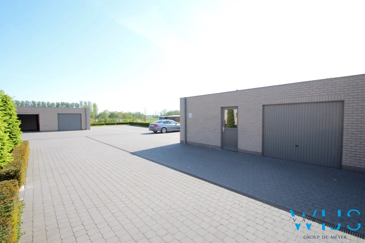 De garage + staanplaats bevinden zich ook achteraan het gebouw.