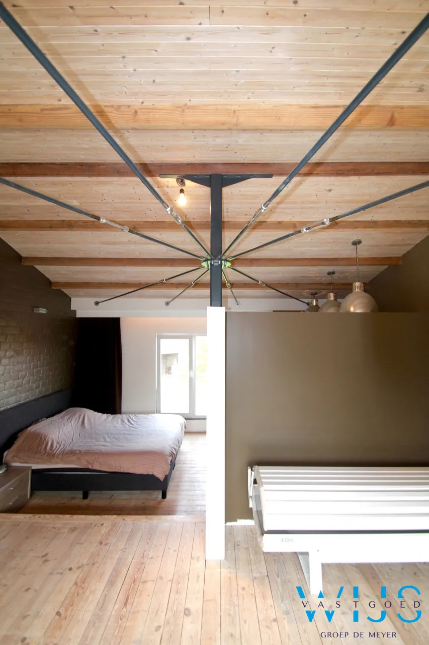 Op de verdieping zijn er 2 normale slaapkamers, de prachtig uitgeruste badkamer, extra berging of extra slaapkamer en de enorm mooie riante master bedroom met dressing ! Hier ziet u ook een unieke dakconstructie !