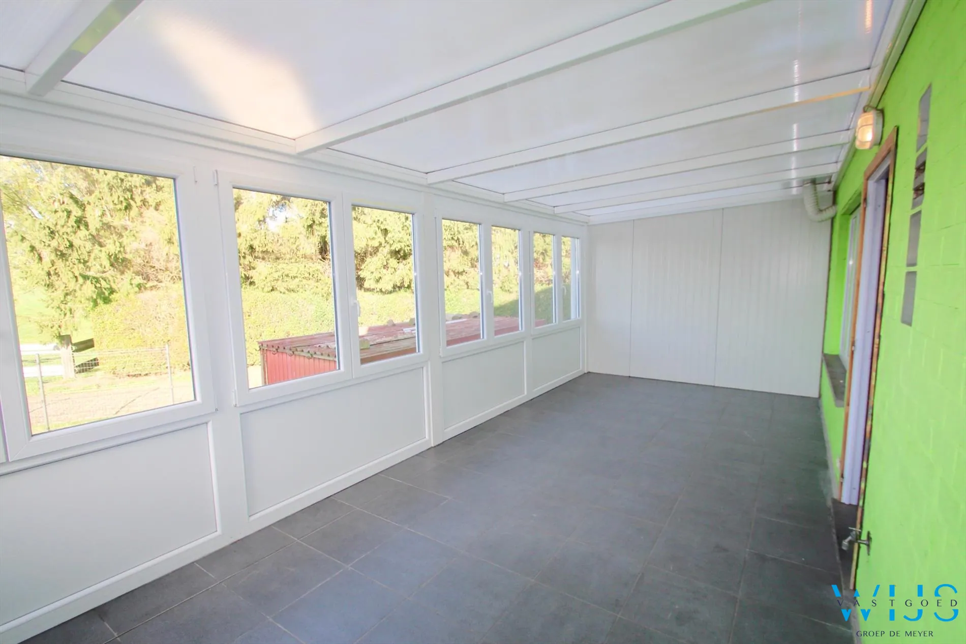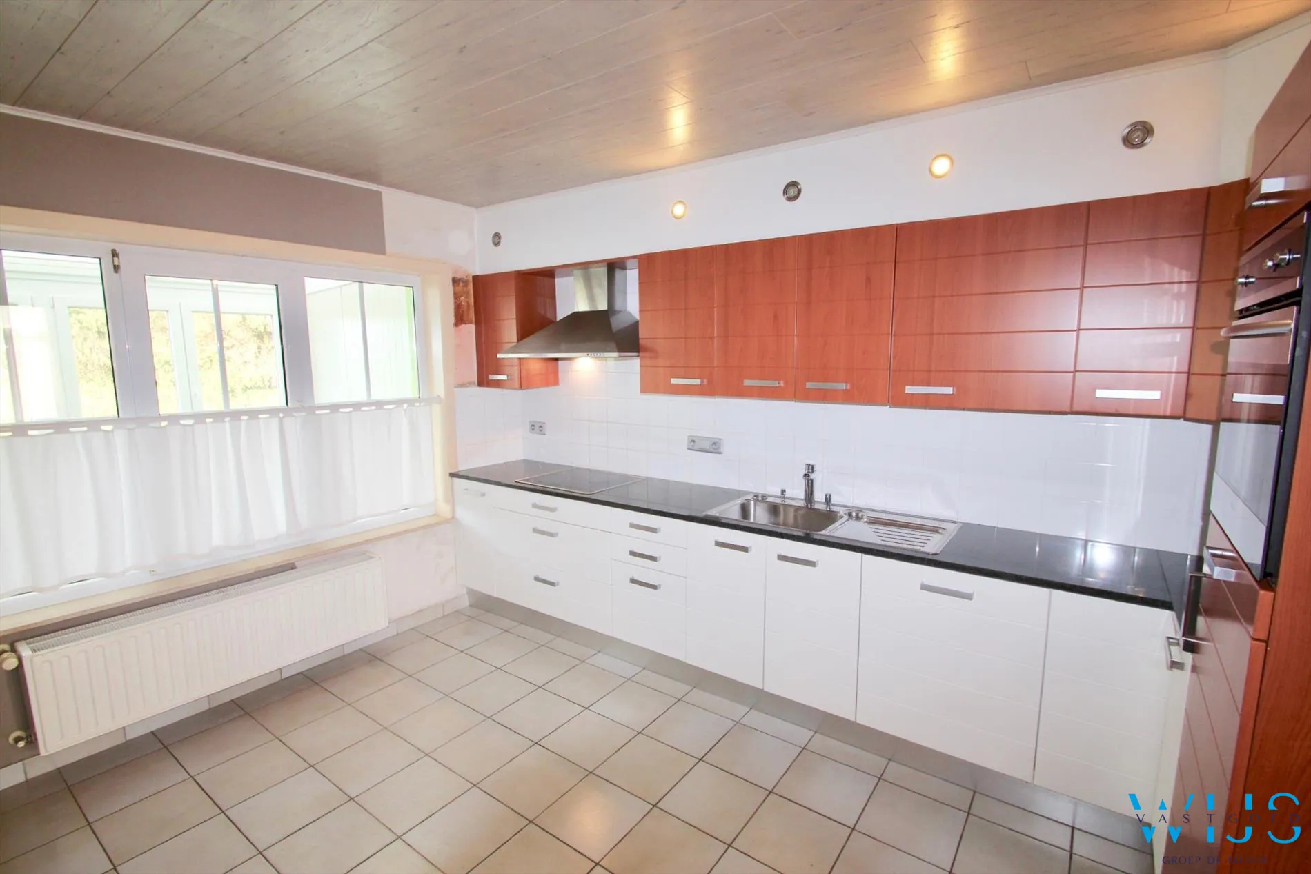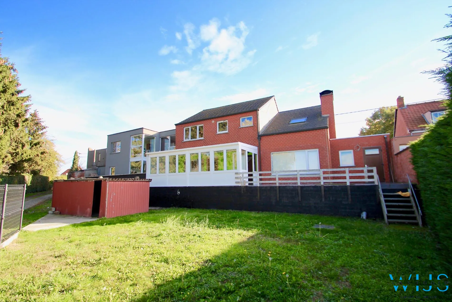 Indeling: Inkom, leefruimte 1, keuken met toestellen, wasplaats, toilet, ruime kelder, 2de zeer ruime leefruimte met uitzicht en houtcassette, inpandige garage en de zeer ruime veranda. Op de verdieping 1 zijn er 4 ... slaapkamers met uitzicht ! + de badkamer met dubbel meubel, douche, bad en toilet. Op de 2de verdieping met vaste trap is er de 5de slaapkamer !