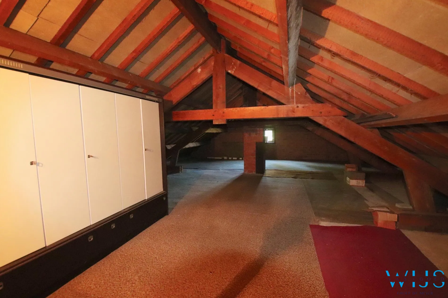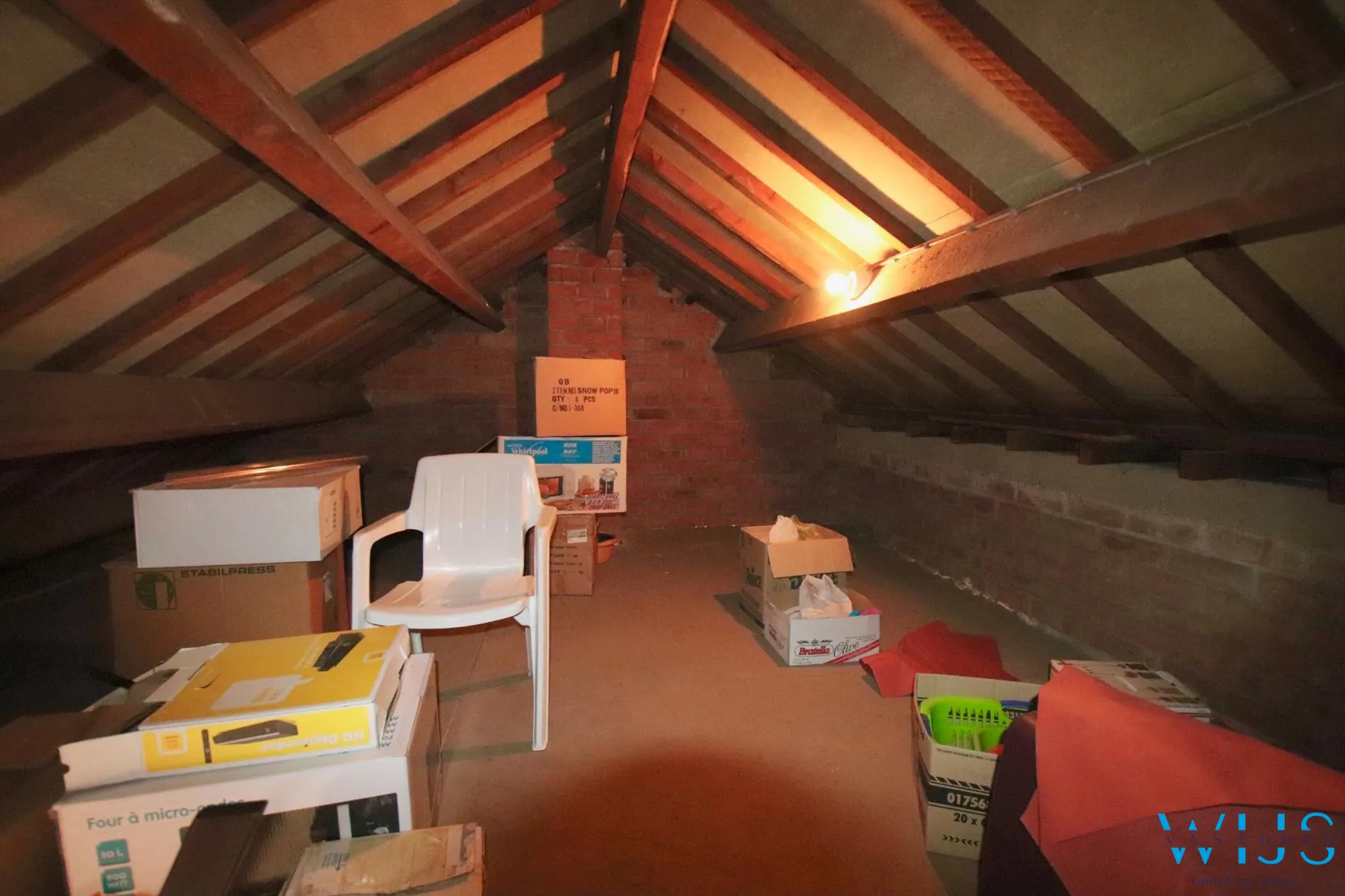 Indeling: inkomhal, toilet, lichtrijke leefruimte, 2 slaapkamers, badkamer met bad, geïnstalleerde keuken, zolder met meerdere mogelijkheden + inpandige garage met elektrische poort en de riante zonnige tuin !