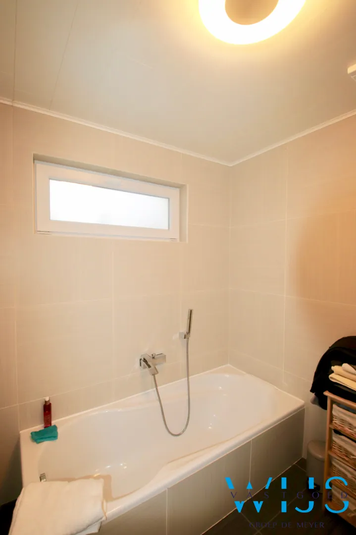 - Open keuken + mooi afgewerkte badkamer met bad en douche.