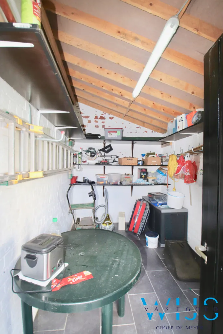 Indeling: Inkom, ruime living, nette keuken, badkamer met douche en bad, apart toilet, aansluitende garage met wasplaats, veranda met zicht op de ... tuin & een tuinberging.