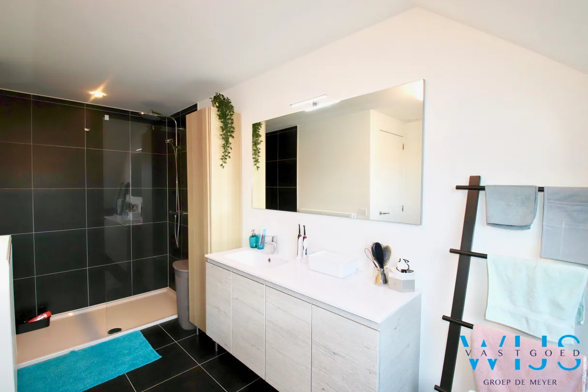 Eerste verdieping: mooie afgewerkte badkamer met bad & inloopdouche en 2 volwaardige slaapkamers.