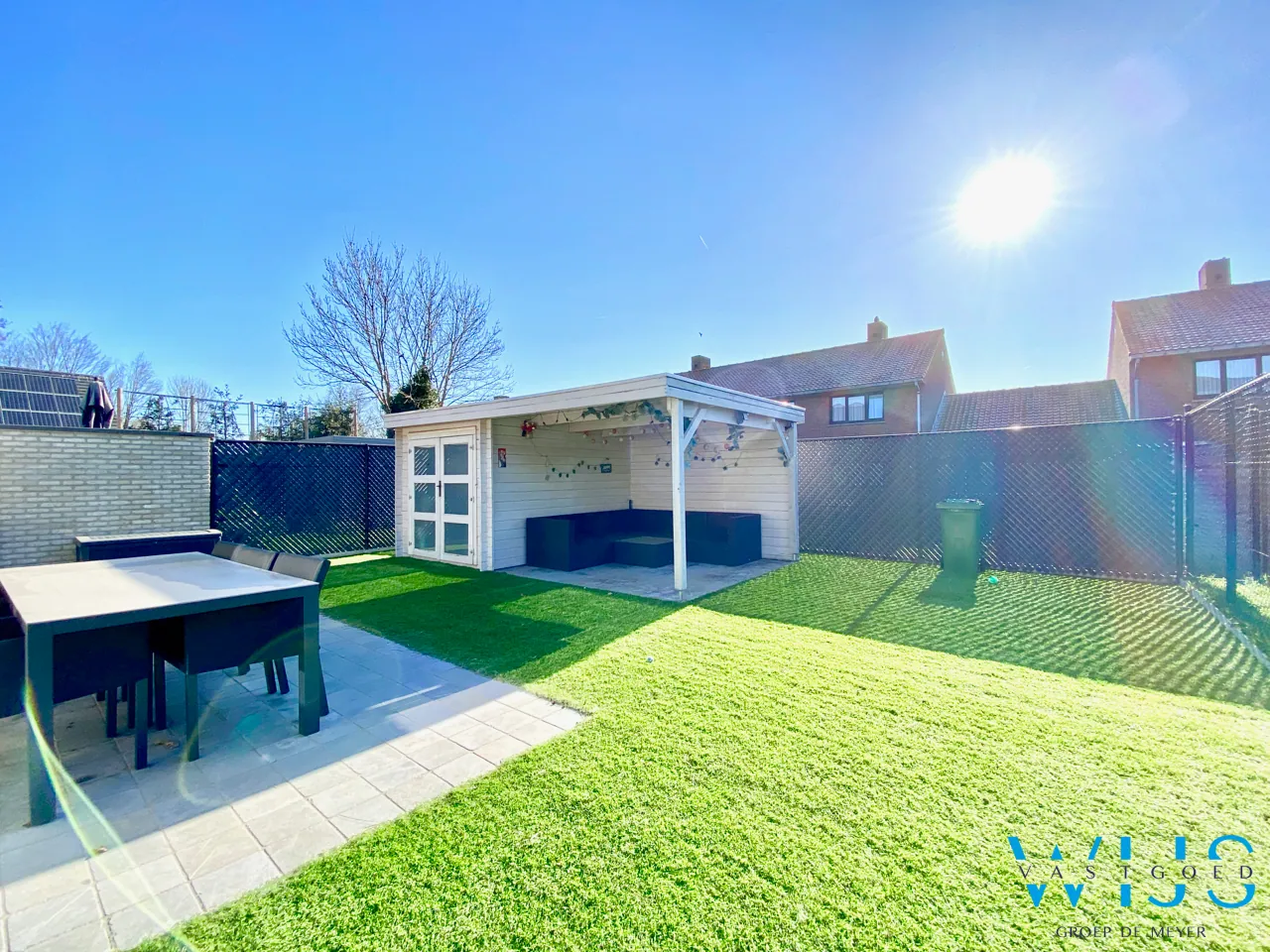 Indeling: gelijkvloers: Inkom met gastentoilet, slaapkamer 1 beneden, gezellige leefruimte met zicht op de tuin, volledig geïnstalleerde open keuken, opbergruimte, volledig afgewerkte tuin met een bijgebouw voorzien van een tuinberging & lounge !