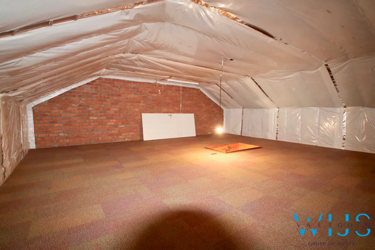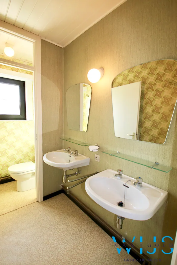 1ste verdieping: apart toilet met 2 wastafels , 4 ... slaapkamers waarvan 1 kleinere en de nog in te richten ruime zolder (2x betonnen gewelven).