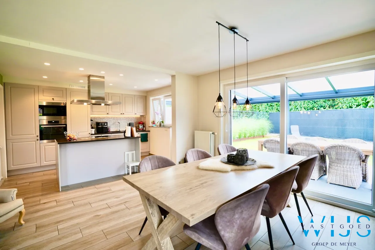 Dit aangenaam woonhuis ligt op een zeer goede locatie in een mooie woonwijk te Boekhoute, hier is geen doorgaand verkeer waardoor deze wijk rustig & zeer kindvriendelijk is! Deze halfopen bebouwing werd doorheen de jaren PERFECT onderhouden en heeft een groene zonnige tuin met enorm veel privacy, prachtige overkapping en extra kwalitatieve tuinberging ! Met een lichtrijke leefruimte, open kwalitatieve keuken, inpandige garage, 3 slaapkamers en een ruime opbergzolder komt u geen ruimte te kort. De 4de kamer boven werd volledig ingericht als dressingruimte ! De zolder of de 2de verdieping kan nog ingericht worden als extra slaapkamer (er zijn tevens betonnen gewelven)