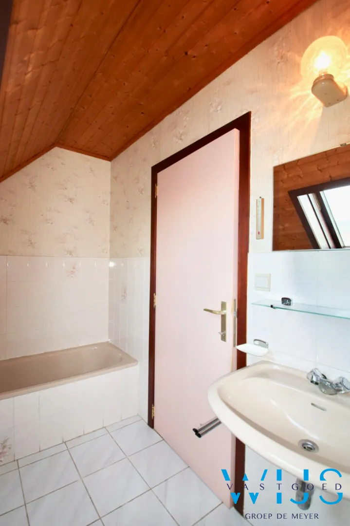 1ste verdieping: 3 volwaardige slaapkamers en de ... badkamer met toilet, bad en douche. De zolder is bergruimte.