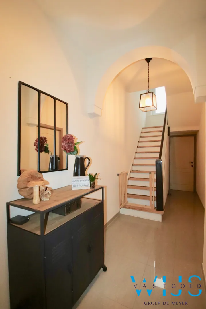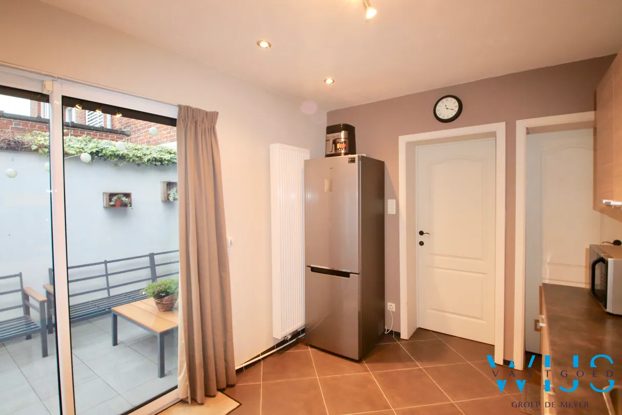 Deze super toffe gezinswoning werd totaal gerenoveerd in 2012 en ligt op een zeer goede en rustige locatie te Eeklo ! Door de uitweg kan u de woning en de garage achteraan eenvoudig bereiken, dit zorgt voor het karakter van een halfopen bebouwing ! Achteraan heeft u dus de ingang naar de aparte garage + nog een extra parkeerplaats waardoor 2 auto's geen enkel probleem vormen. Verder beschikt dit pand over aangename knusse en volwaardige ruimtes en een zeer gezellige binnenkoer. Ideaal als starterswoning & zo goed als geen geen onderhoud buiten ! In totaal zijn er 3 zeer ruime slaapkamers waarbij de masterbedroom een leuke eyecatcher is met zelfs een losstaand bad !