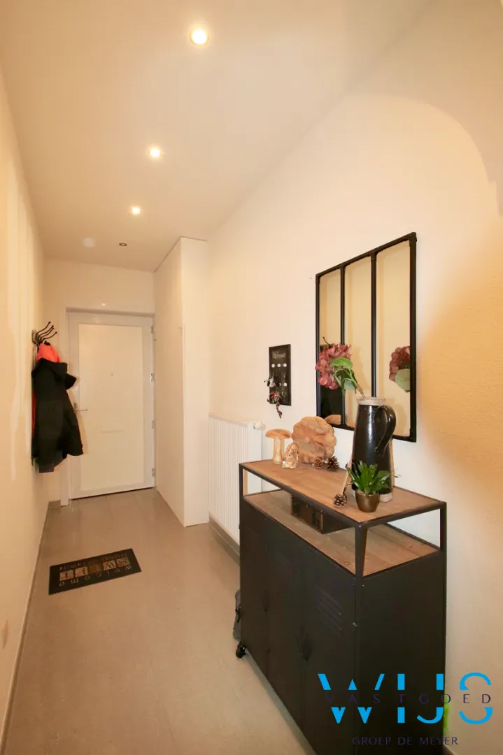 Indeling: Karaktervolle inkomhal, leefruimte met eet- en zithoek, geïnstalleerde keuken, badkamer met douche & toilet, de ultra gezellige binnenkoer en de aparte handige garage met opbergruimte(s).