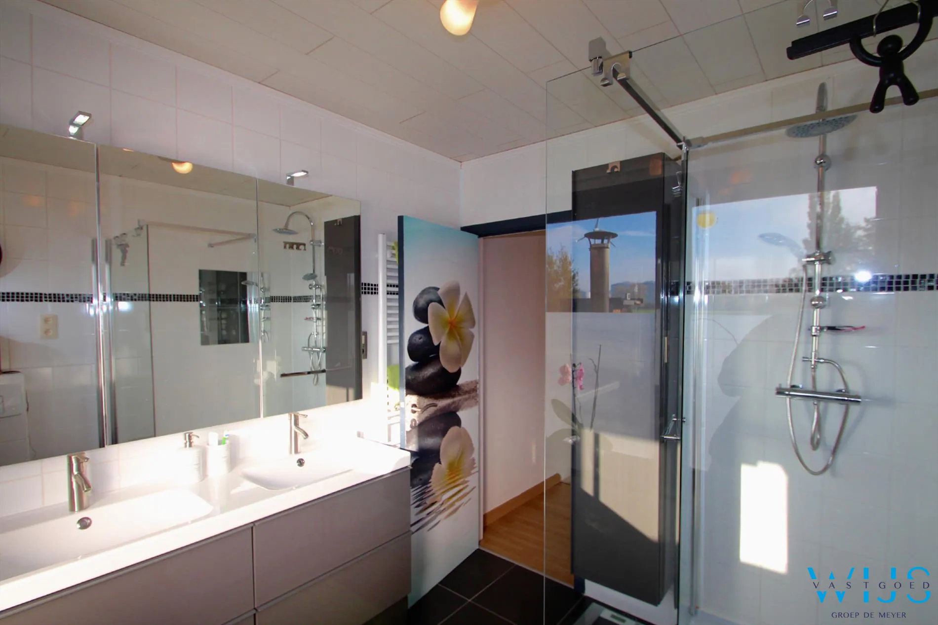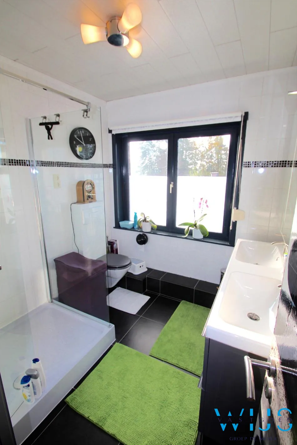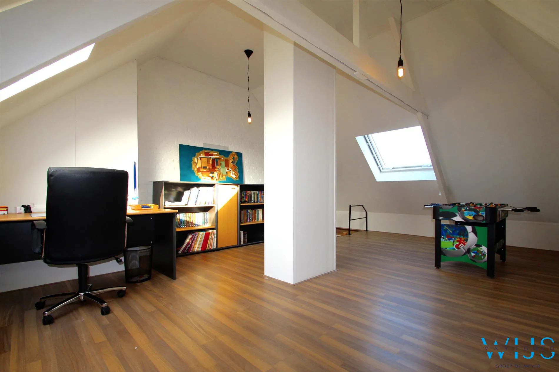 Op de verdieping zijn er 2 ruime slaapkamers, mooie badkamer met douche, toilet en dubbel lavabomeubel en de zopas ingerichte toffe zolderruimte / 3de slaapkamer die bovendien bereikbaar is met een vaste trap.