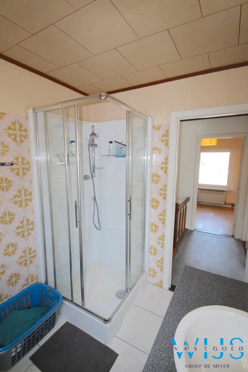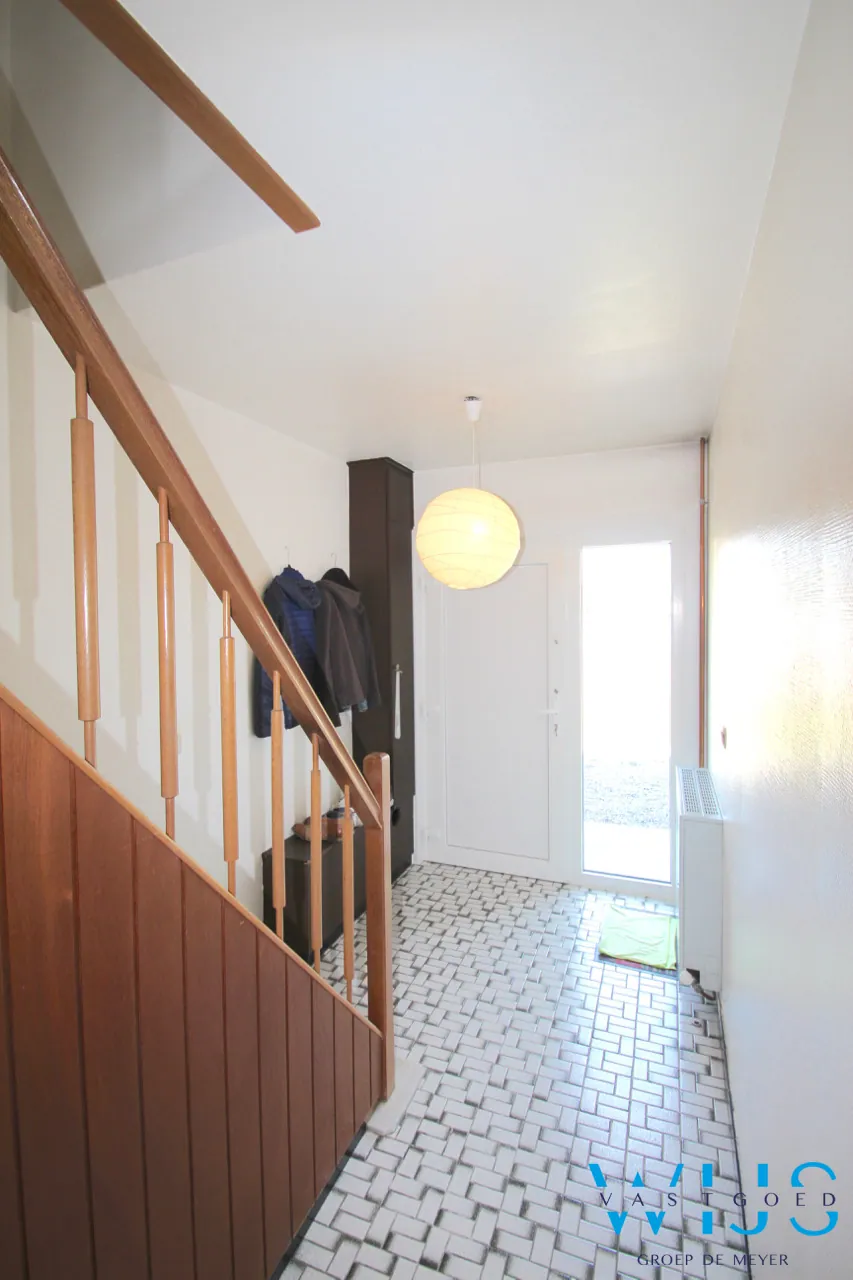De indeling : inkomhal met vestiaire, leefruimte met veel lichtinval en aansluitend terras, aparte keukenruimte met berging, wasplaats/stookruimte, apart toilet, garage met sectionaal poort. Boven zijn er 3 slaapkamers waarvan 2 ruime + de ... nette onderhouden badkamer. De zolderruimte is makkelijk in te richten als extra kamer of....