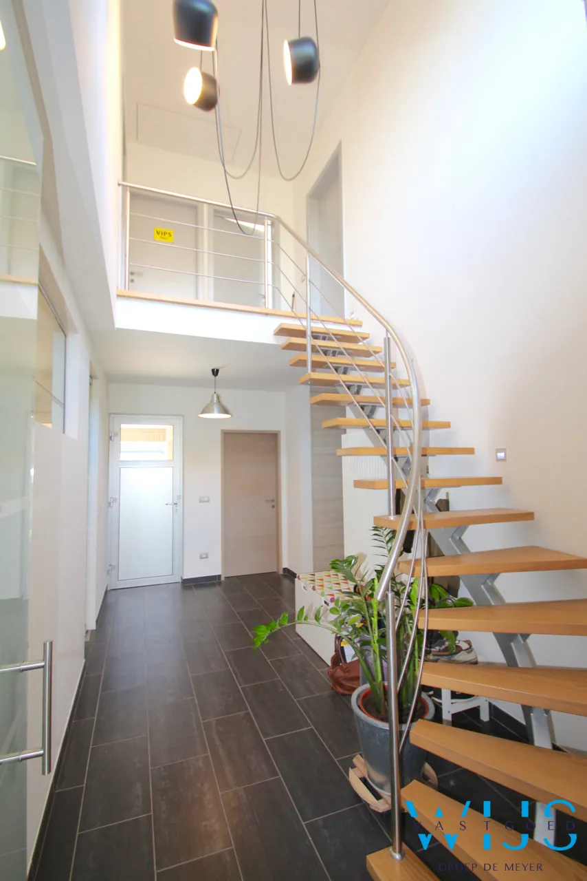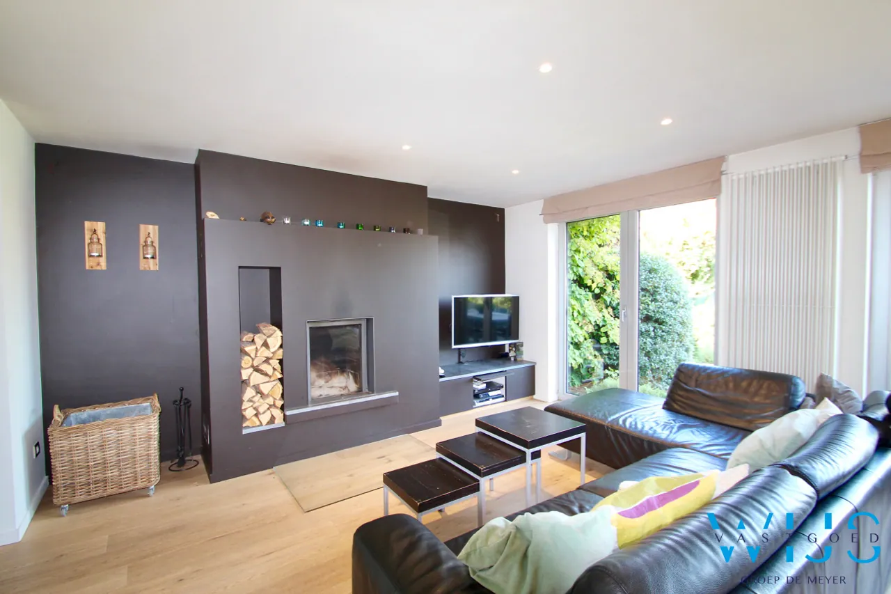 Indeling: Mooie inkomhal met ingemaakte kasten, ruime wasplaats/berging1 en berging 2 (bij de keuken), toffe geïnstalleerde keuken met aansluitend de zeer mooie leefruimte met PARKETvloer en haardcassette + in de hoek een leuke bureauruimte! vanuit de leefruimte heeft u een prachtig zicht op de tuin en terras.