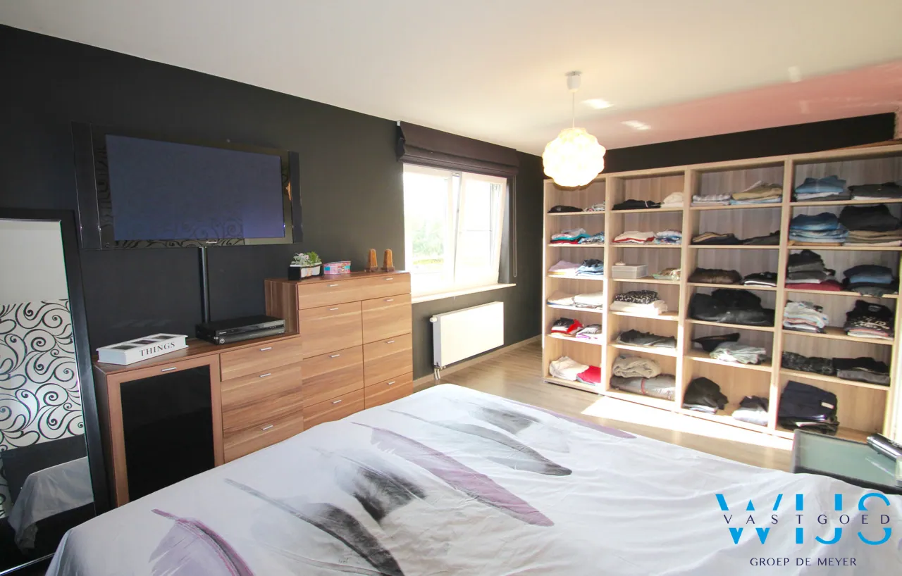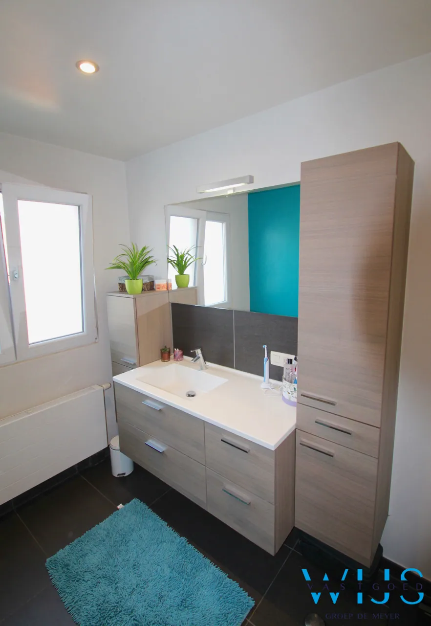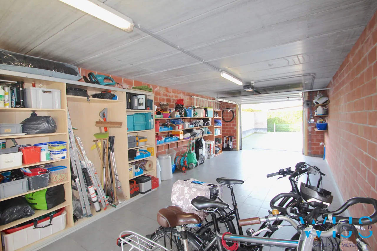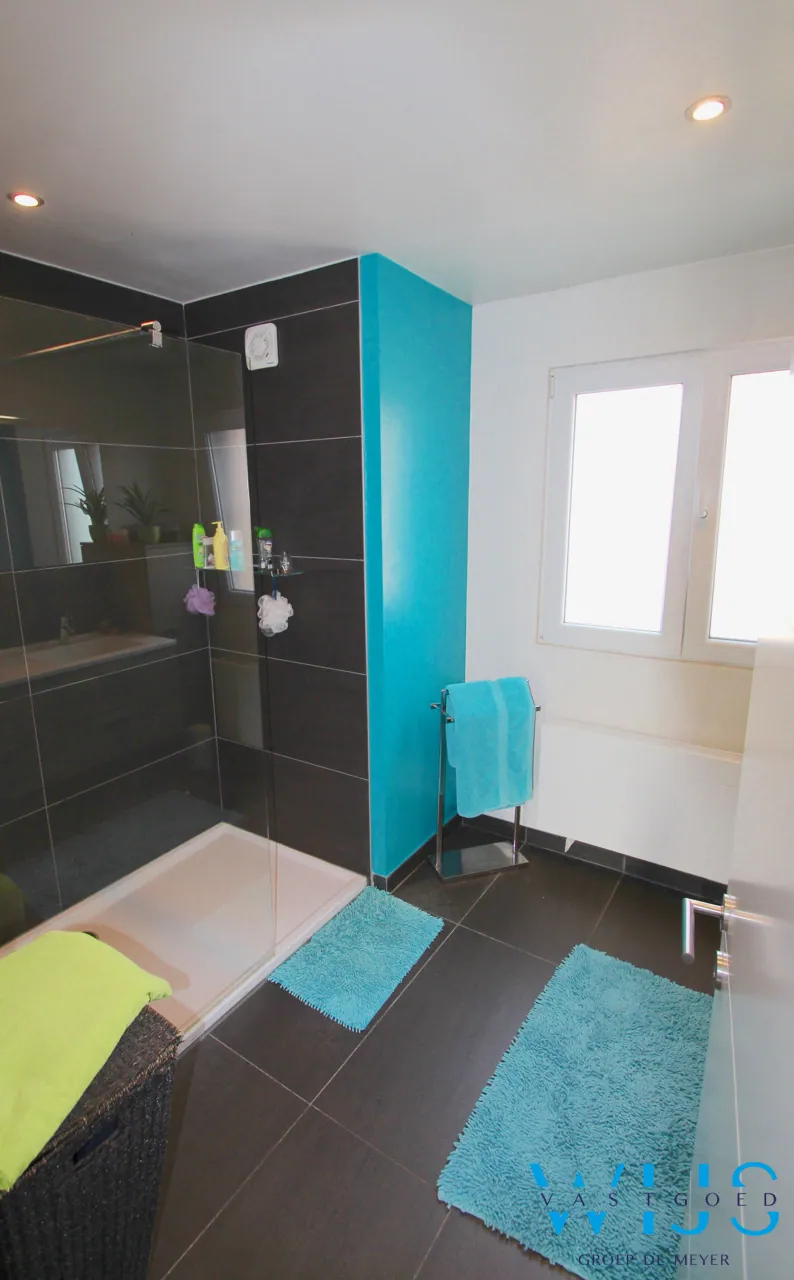 Indeling:: inkom met apart toilet en ingemaakte kasten (vestiaire), berging onder trap, ruime mooie afgewerkte keuken met kwalitatieve toestellen en eiland, lichtrijke leefruimte (zit -en eetplaats) met pelletkachel ( 2016) en toegang naar het terras, aparte doorgang naar de tuin met achterdeur, traphal. Op de 1ste verdieping is er de mooie badkamer met inloopdouche en dubbel meubel, apart toilet + 2 enorm ruime slaapkamers waarvan een met dressing.