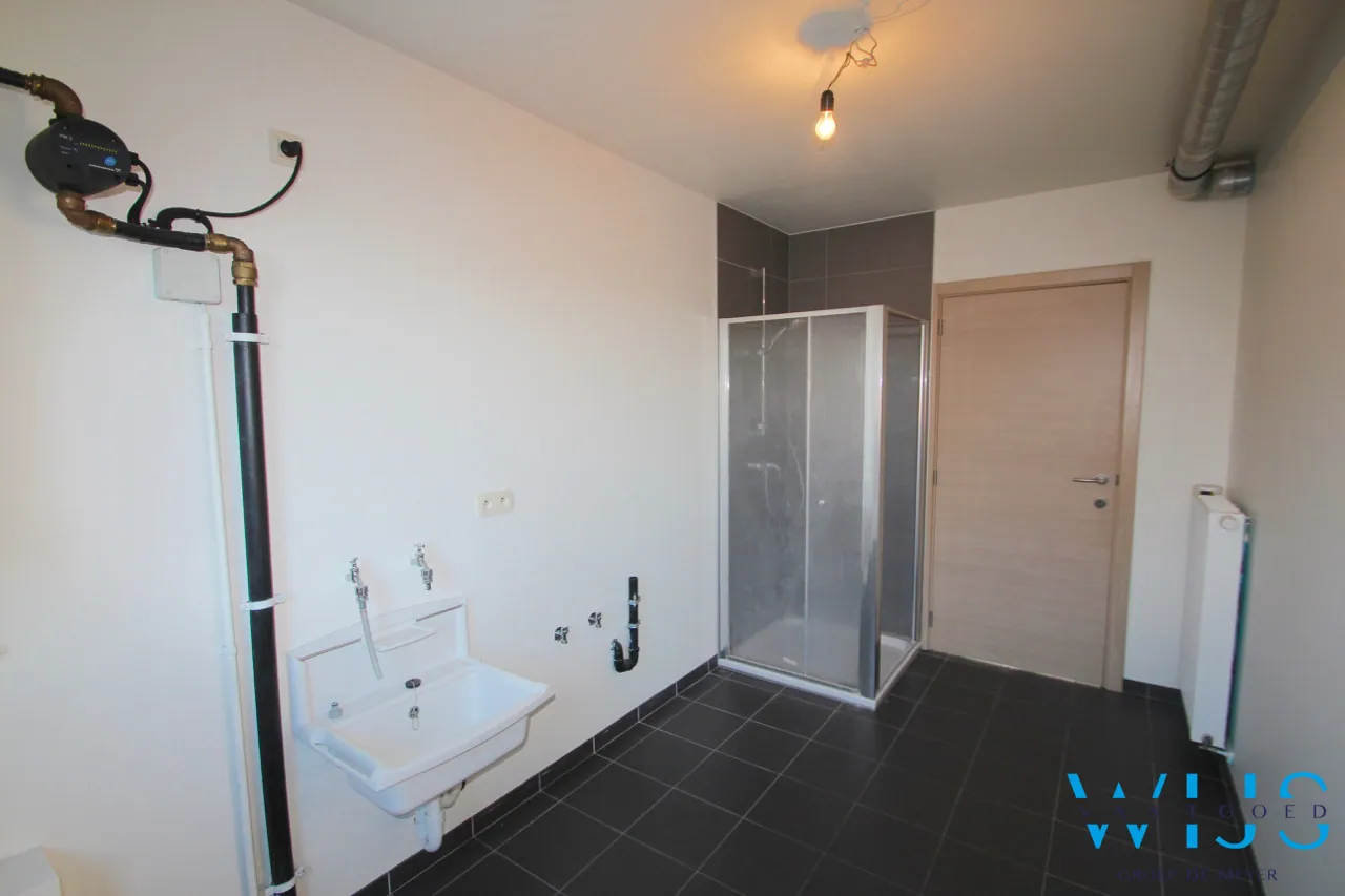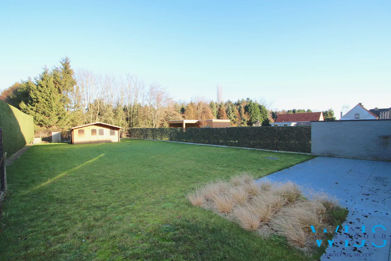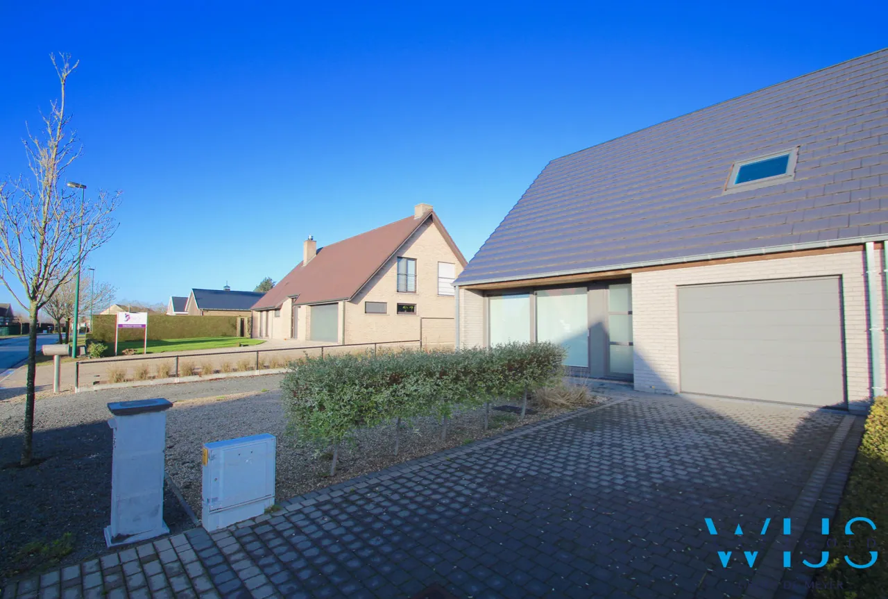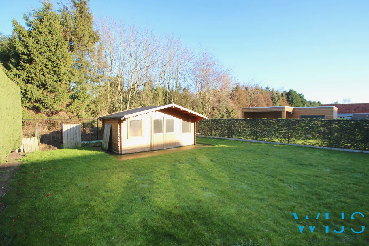 Het woonhuis heeft een zeer gezellige lichtrijke leefruimte met open geïnstalleerde keuken van waaruit je een prachtig zicht hebt op de groene tuin met ruim tuinhuis. Verder hebben we een wasruimte/achterhal met douche, ruime garage met elektrische poort, inkomhal met toilet en ruime oprit in klinkers. Een 2de oprit + 2 parkeerplaatsen is er tevens ook aanwezig.