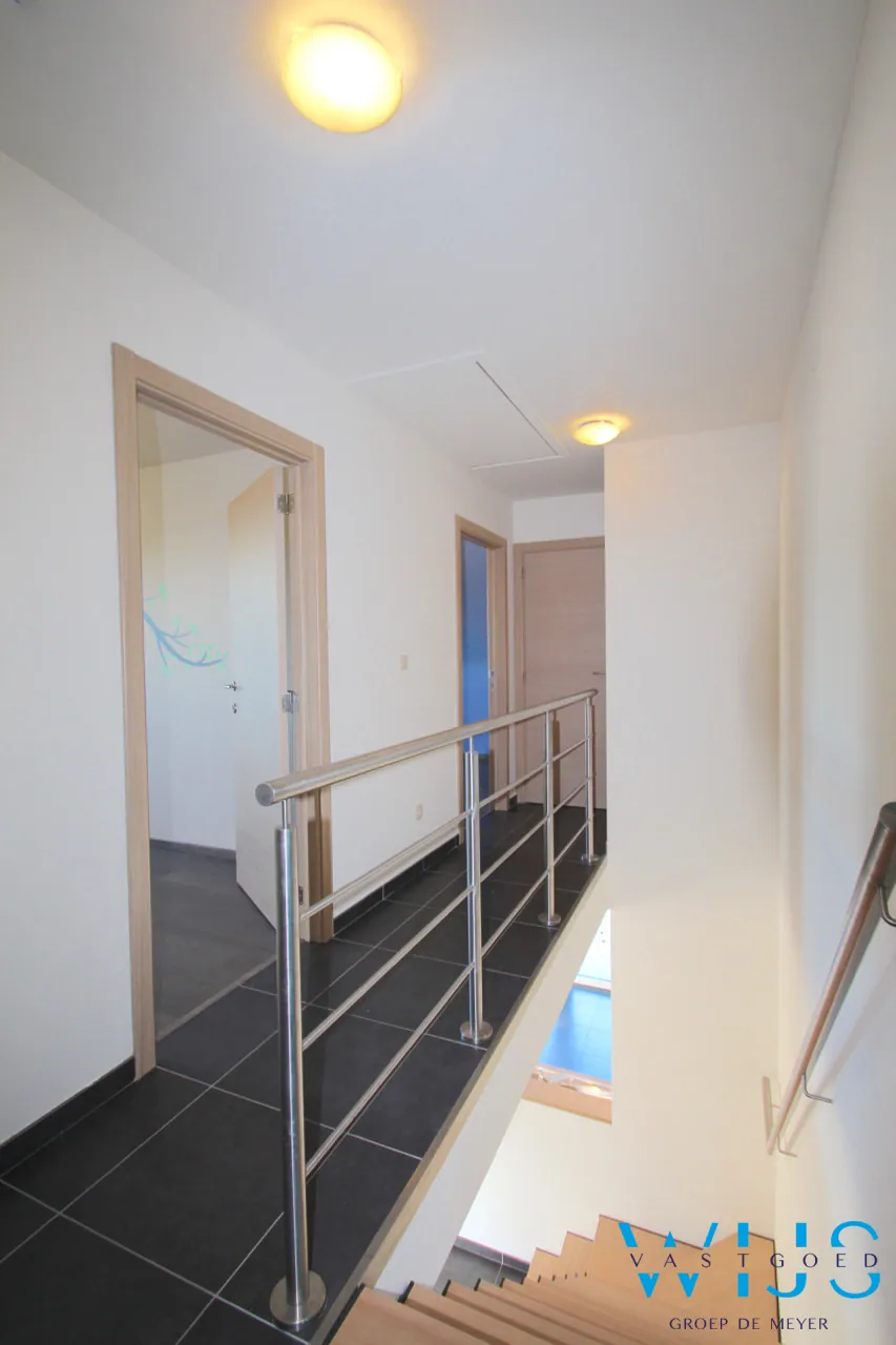 Op de verdieping vinden we 3 ruime slaapkamers waarvan 1 met een dressing en verbonden geïnstalleerde badkamer, een apart toilet en een handige zolder.