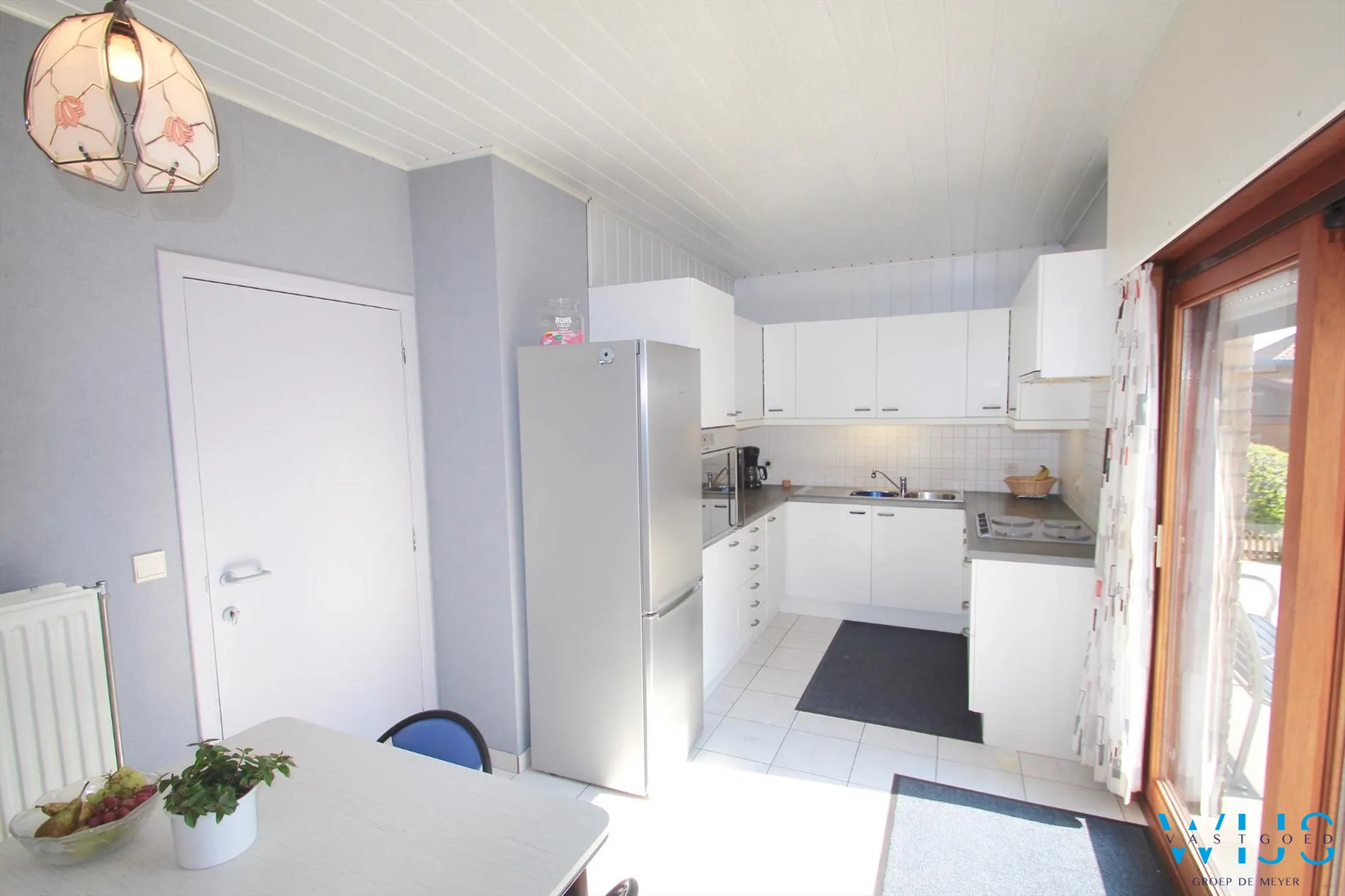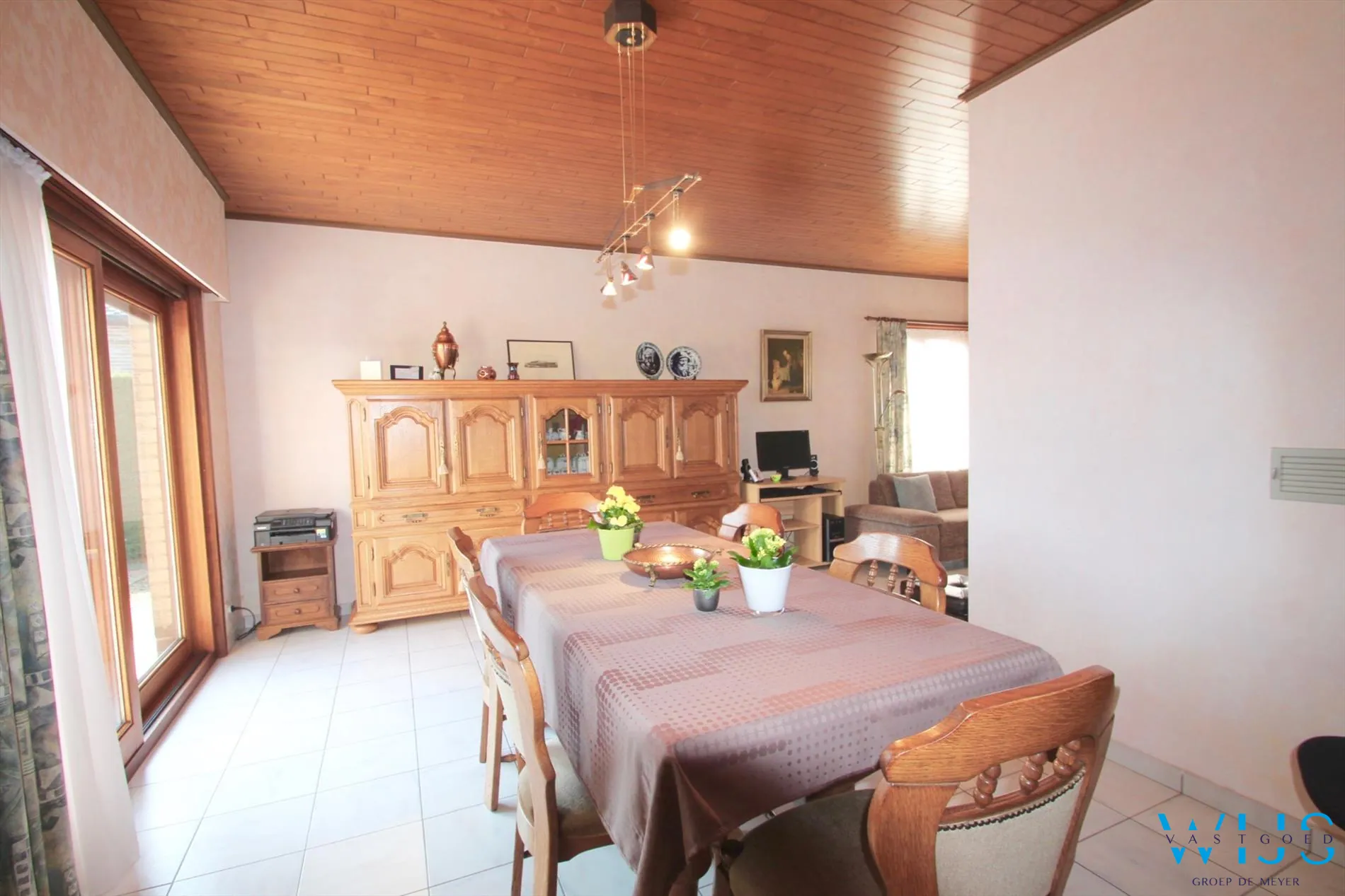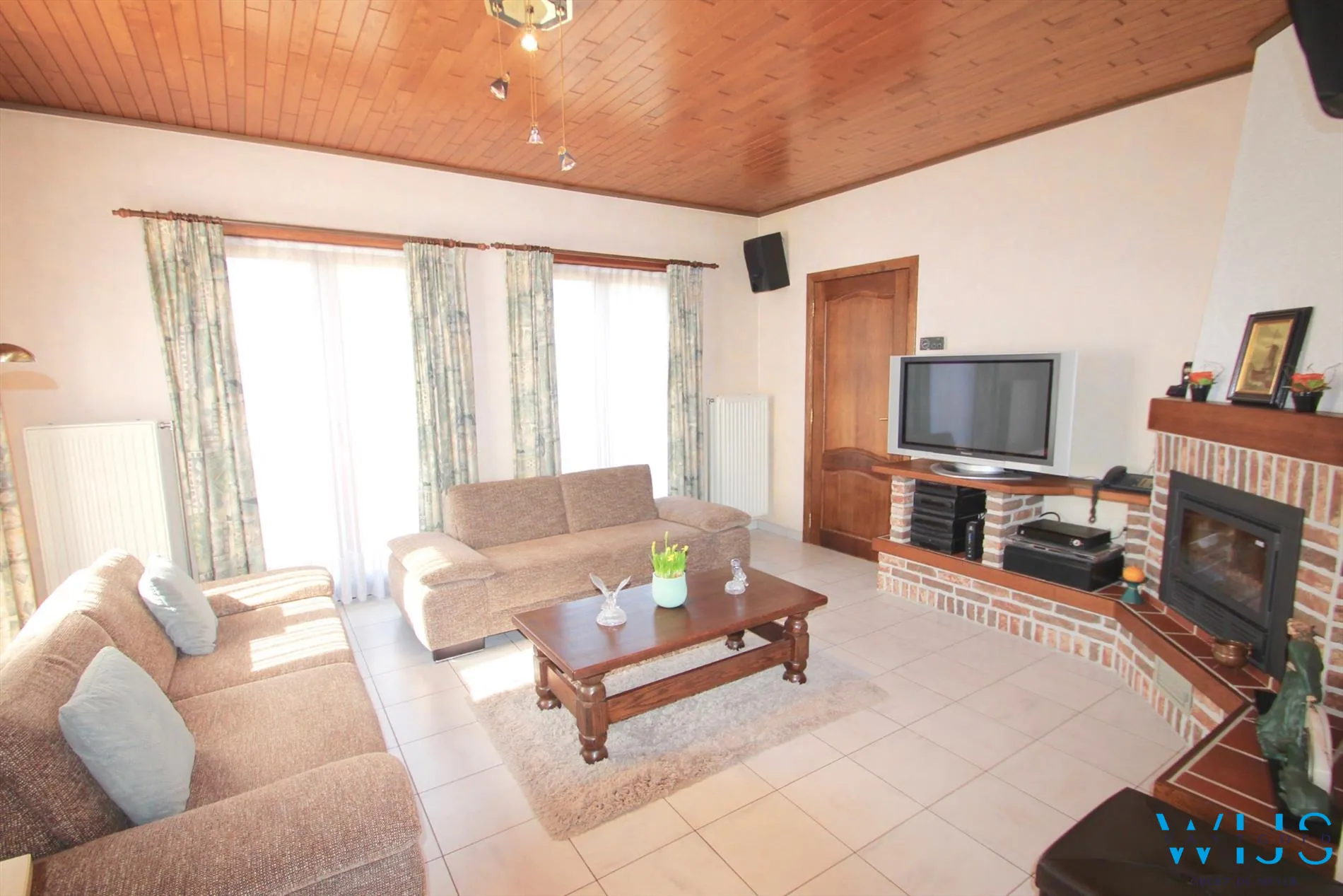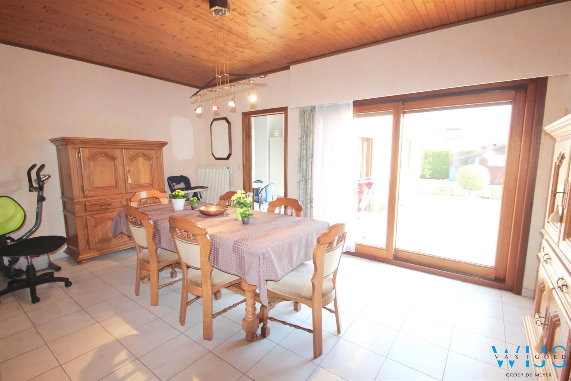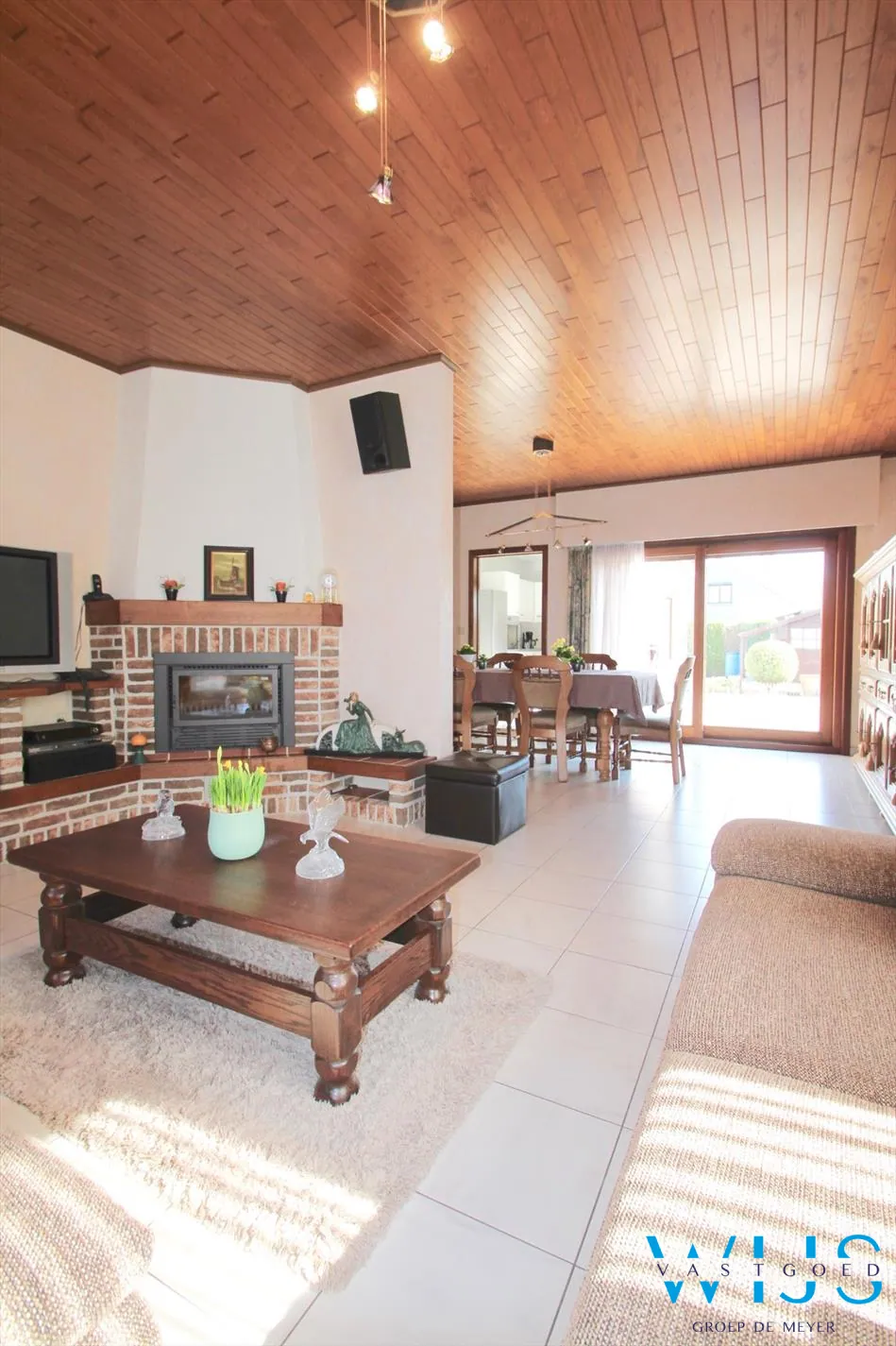 Indeling: Inkomhal met vestiaire, apart toilet, inpandige garage met recente elektrische sectionaalpoort, mooie leefruimte met aparte zit -en eetruimte, keukenruimte met aansluitend terras, nachthal, badkamer met bad en de 3 slaapkamers. De zolder biedt nog extra mogelijkheden.